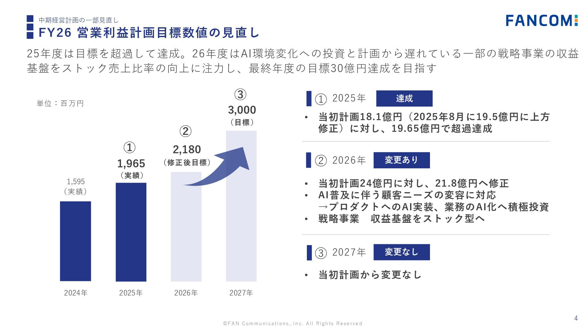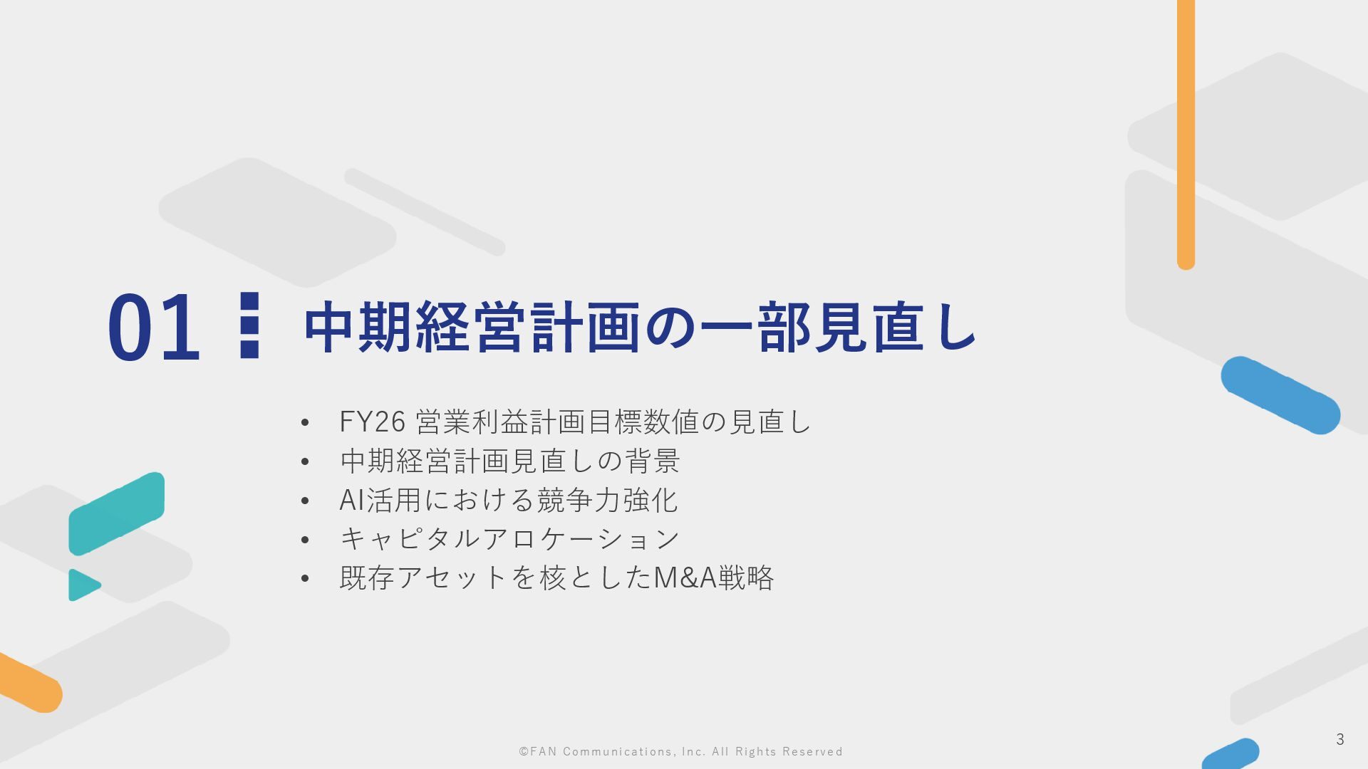 ©FAN Communications, Inc. All Rights Reserved 01 中期経営計画の一部見直し • FY26