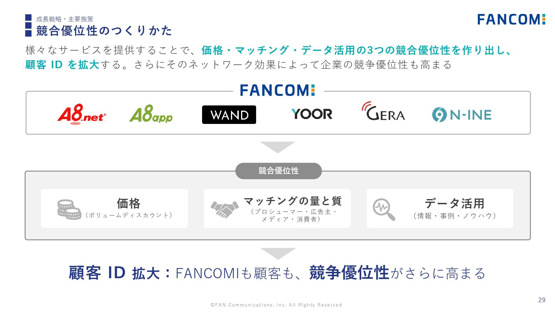©FAN Communications, Inc. All Rights Reserved 28 成長戦略・主要施策 デジタルマーケティング支援の具体的イメージ 多様なサービスを網羅して提供することで、