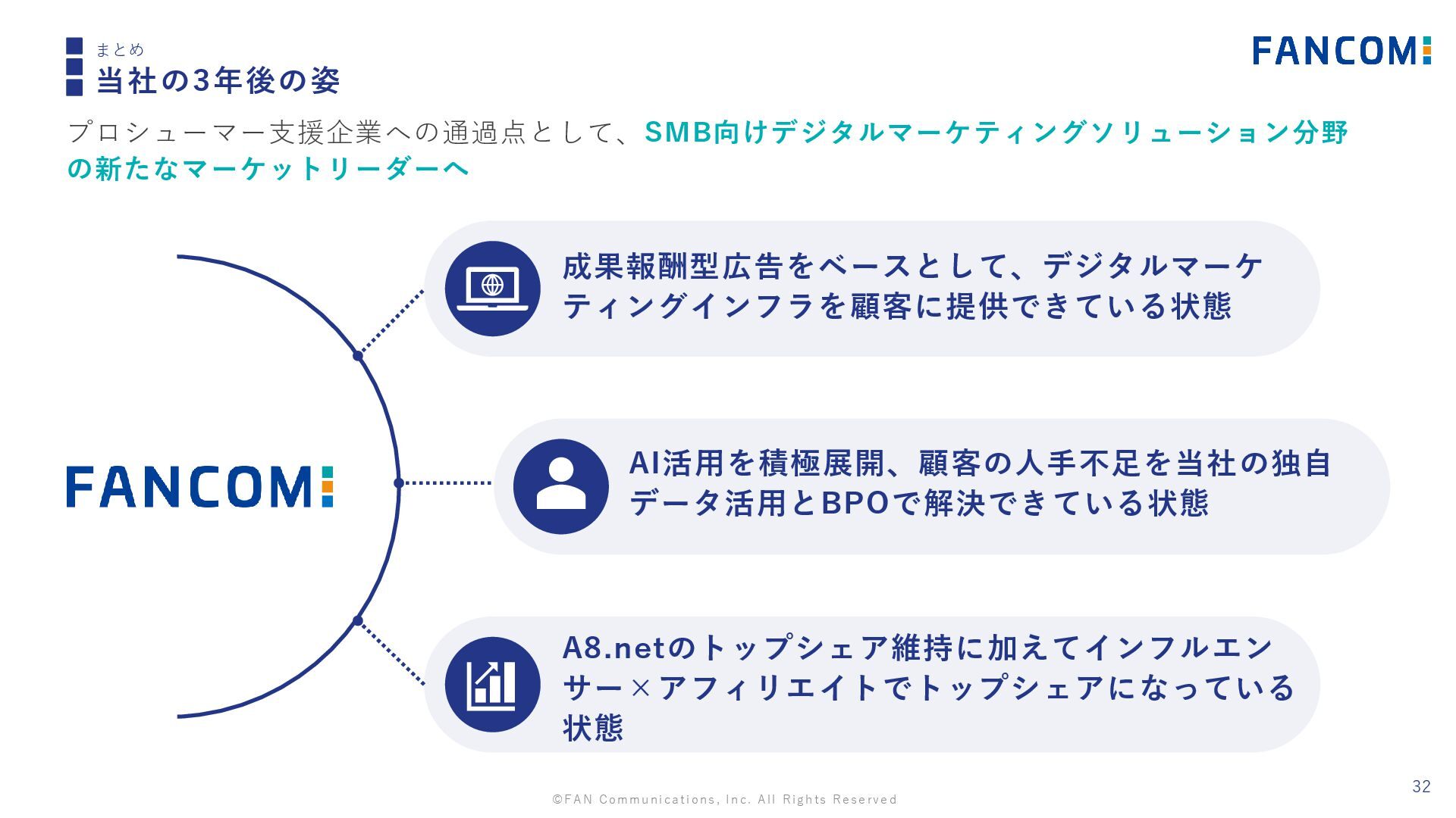 ©FAN Communications, Inc. All Rights Reserved 32 まとめ 当社の3年後の姿 プロシューマー支援企業への通過点として、SMB向けデジタルマーケティングソリューション分野