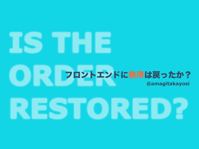 ORDER RESTORED? IS THE ORDER RESTORED? IS THE ORDER RESTORED? IS THE ORDER RESTORED? ϑϩϯτΤϯυʹடং͔ͬͨʁ @amagitakayosi