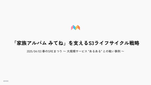 ©MIXI 「家族アルバム みてね」を支えるS3ライフサイクル戦略 2025/04/03 春のSREまつり 〜 大規模サービス "あるある" との戦い事例 〜