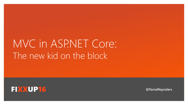 So much exciting stuff has happened with ASP.NET lately. In this session Fanie Reynders focuses specifically on MVC in ASP.NET Core, a brand new framework for the next generation of the .NET Platform, and teaches us how you can quickly get on-board using it - even your current MVC & Web API knowledge.