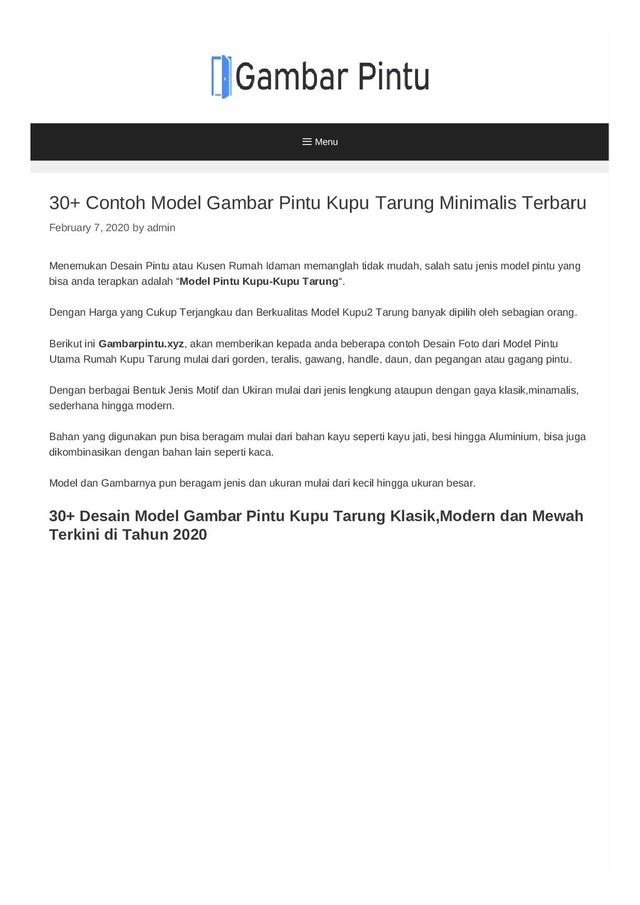 7, 2020 by admin Menemukan Desain Pintu atau Kusen Rumah Idaman memanglah tidak mudah, salah satu jenis model pintu yang bisa anda terapkan adalah “Model Pintu Kupu-Kupu Tarung“. Dengan Harga yang Cukup Terjangkau dan Berkualitas Model Kupu2 Tarung banyak dipilih oleh sebagian orang. Berikut ini Gambarpintu.xyz, akan memberikan kepada anda beberapa contoh Desain Foto dari Model Pintu Utama Rumah Kupu Tarung mulai dari gorden, teralis, gawang, handle, daun, dan pegangan atau gagang pintu. Dengan berbagai Bentuk Jenis Motif dan Ukiran mulai dari jenis lengkung ataupun dengan gaya klasik,minamalis, sederhana hingga modern. Bahan yang digunakan pun bisa beragam mulai dari bahan kayu seperti kayu jati, besi hingga Aluminium, bisa juga dikombinasikan dengan bahan lain seperti kaca. Model dan Gambarnya pun beragam jenis dan ukuran mulai dari kecil hingga ukuran besar. 30+ Desain Model Gambar Pintu Kupu Tarung Klasik,Modern dan Mewah Terkini di Tahun 2020 Menu