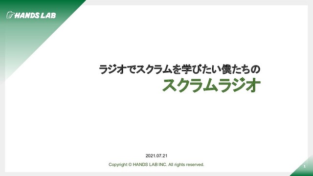 1 ラジオでスクラムを学びたい僕たちの スクラムラジオ 2021.07.21 Copyright © HANDS LAB INC. All