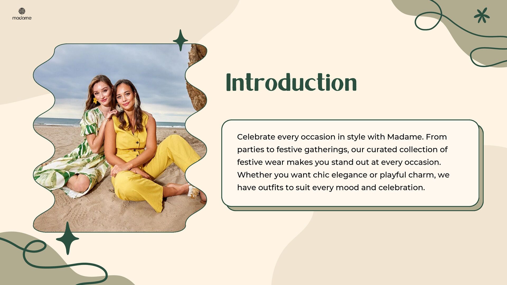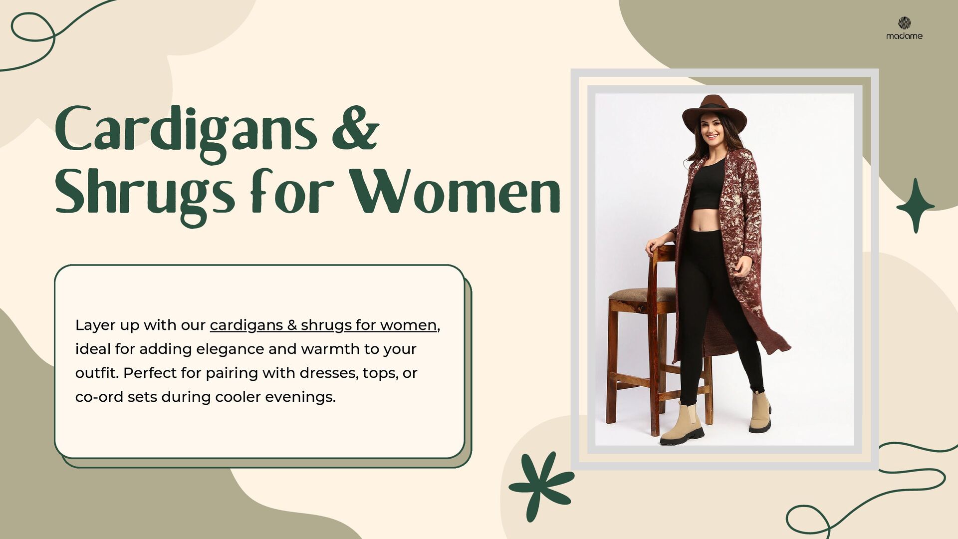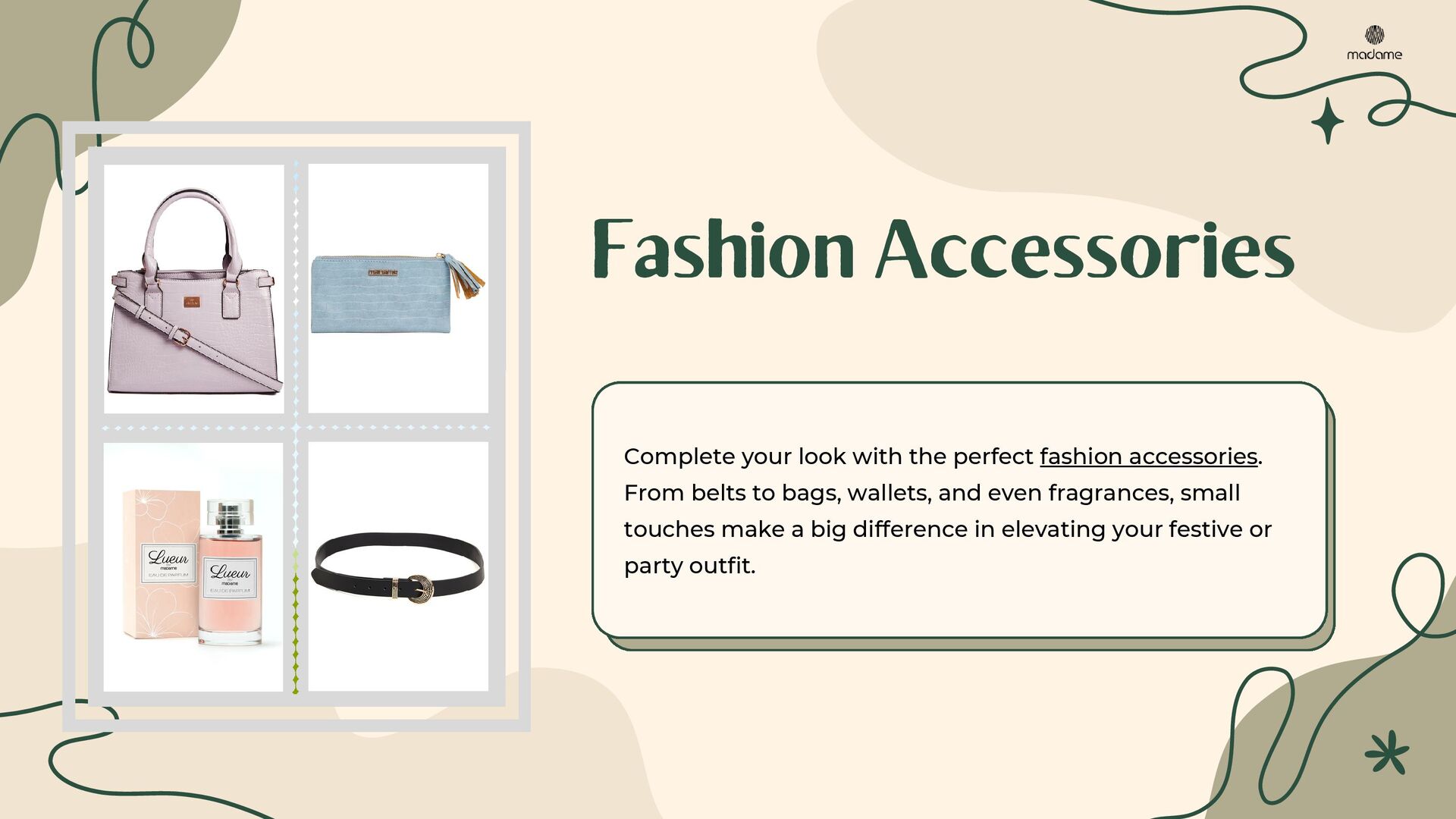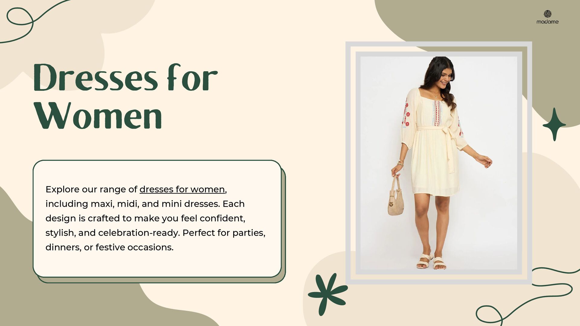 Discover the ultimate guide to festive and party-ready outfits with Madame. This PDF presentation highlights stylish dresses, trendy tops, versatile denim, chic co-ord sets, elegant cardigans & shrugs, and must-have fashion accessories. Perfectly curated for modern women, it offers styling tips to create effortless looks for every occasion. Explore timeless western wear for women and upgrade your wardrobe with Madame’s signature collection.