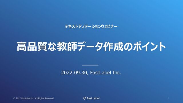 AI⾰命の インフラになる - Infrastructure for AI Innovations - Our Mission 社名 ︓ FastLabel株式会社 / FastLabel Inc. 代表者 ︓ 上⽥ 英介 / Eisuke Ueta 設⽴⽇ ︓ 2020年1⽉23⽇ 従業員 ︓ 20名(うち役員、正社員14名) 株主 ︓ ジャフコグループ株式会社、 Sony Innovation Fund 株式会社NTTドコモ・ベンチャーズ 他 資本⾦ ︓ 2.4億円 事業 ︓ アノテーションサービス代⾏、アノテーション プラットフォーム等の開発・提供 「AI⾰命のインフラになる」をミッションに、AIエンジニアが⽴ち上げたスタートアップになります。