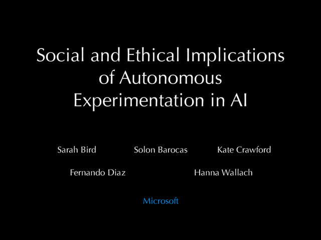 Bird Solon Barocas Kate Crawford Fernando Diaz Hanna Wallach Microsoft