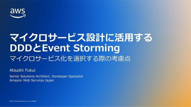 its affiliates. アカウント サービス ユーザー サービス 共有されている モノリシック データベース Store Front ユーザー インターフェイス レガシーシステム クライアント ブラウザ カート マイクロサービス ACL ユーザー マイクロサービス 新機能 サービス API API API アカウント マイクロサービス API ストラングラーパターンでモノリスから移⾏