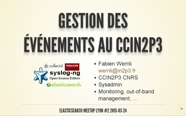 We present our event management solution at CCIN2P3. It is based on syslog-ng, collectd, riemann and elasticsearch.