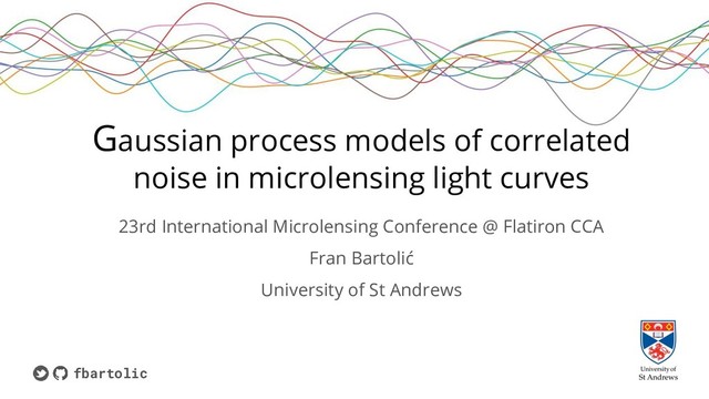 - robust GPs with Student T noise, mixture model, sigma clipping? • How to deal with reported error bars? - hierarchical model for rescaling factors? • How to incorporate other information in the noise model? - Simultaneously fitting GPs to other stars in the field, tractable approximations of multi-dimensional GPs? • GPs with binary lens events? - Sort out the model without GPs first