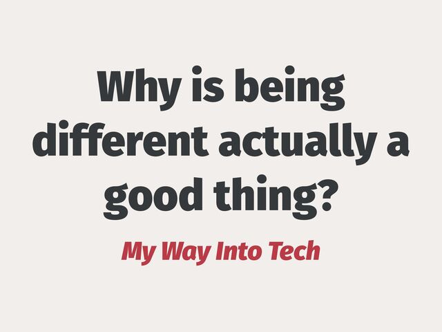 I've been working in IT for about seven years now, but especially at the beginning of my career I was troubled by self-doubt and imposter syndrome. How do I fit in? This is probably the question most employees ask themselves when they start a new job. It took me some time to understand that it is actually good to be different from everyone else and not try to fit in. In this 20-minute lightning talk, I share my personal story about my experiences, my journey and my challenges and how I finally found my place in the tech industry because I didn't try to be like everyone else.