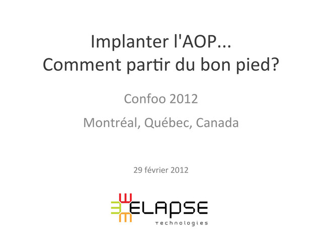 Cette présentation a pour but d'aider une équipe à embrasser l'AOP tout en évitant les pièges. On y traitera de diverses bonnes et mauvaises pratiques avec l'AOP (architecture, IDE, refactorisation, tests...). L'accent sera placé sur des conseils pratiques comme le choix de frameworks (ex.: AspectJ ou Spring-AOP), du mode de tissage approprié à votre contexte, des conflits avec d'autres technologies Java, etc.