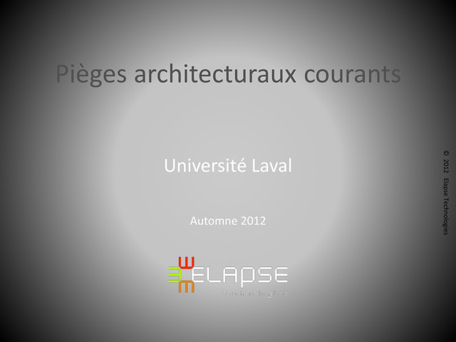Présentation donnée par Félix-Antoine Bourbonnais aux étudiants en génie logiciel et informatique de l'Université Laval dans le cadre d'un cours d'Architecture logicielle.