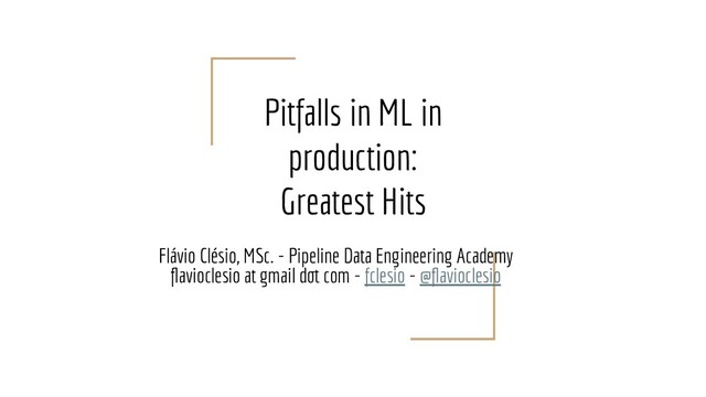 Methodology (XGH) - No testing, no logging, no CI, no CD, no git, and data in local machine - All work in the “Untitled38.ipynb” What to do: - Explain that notebooks are great in prototyping, but not suitable for production if you’re not Netflix - Pairing + Mobbing with Data Scientists - Explain to your boss the overhead of not have it