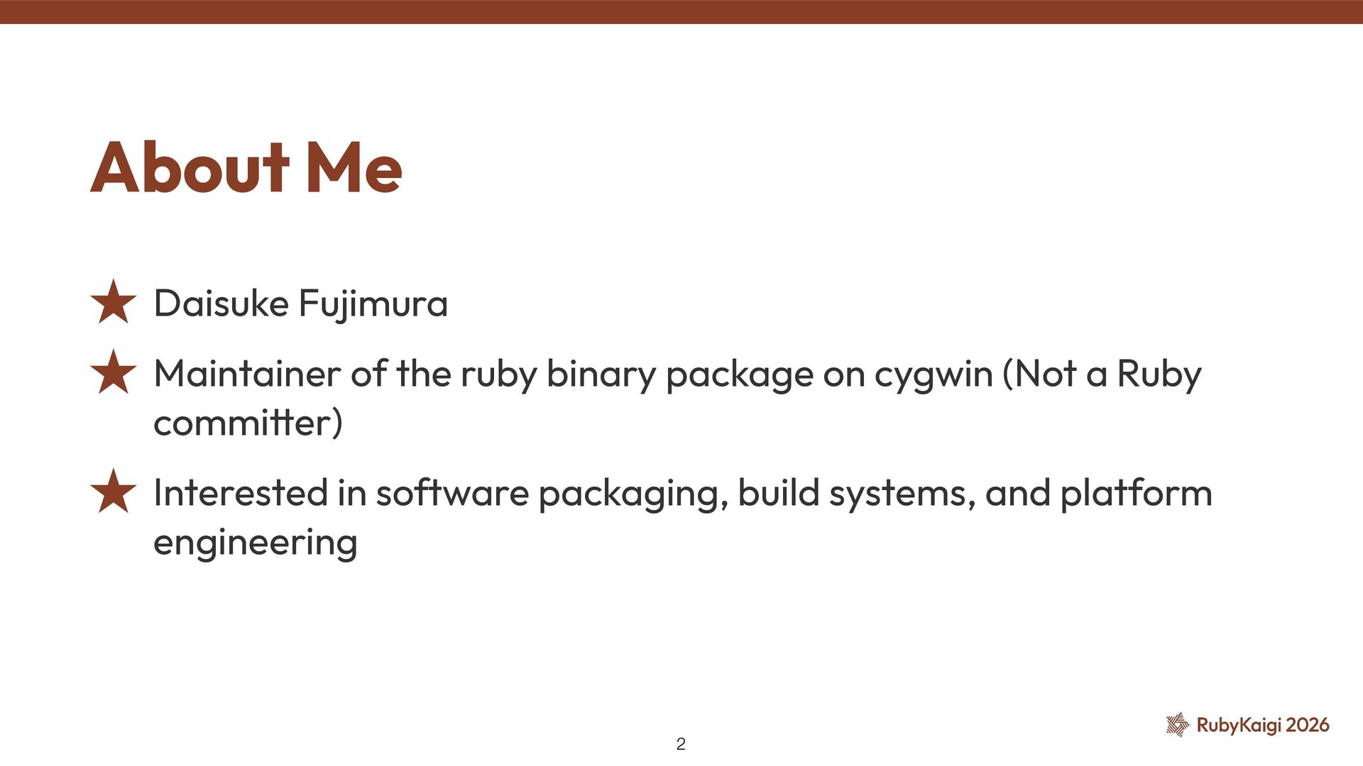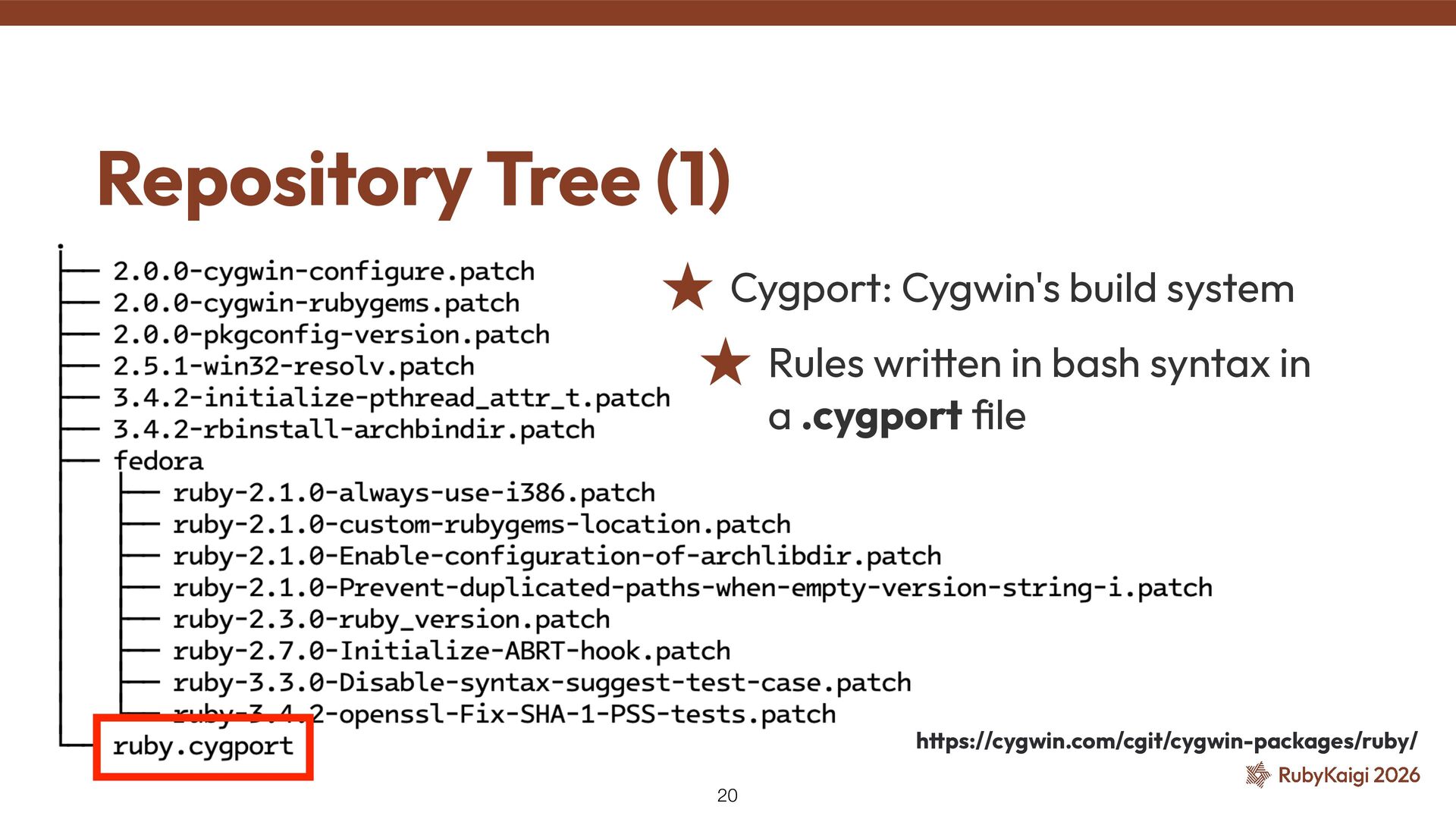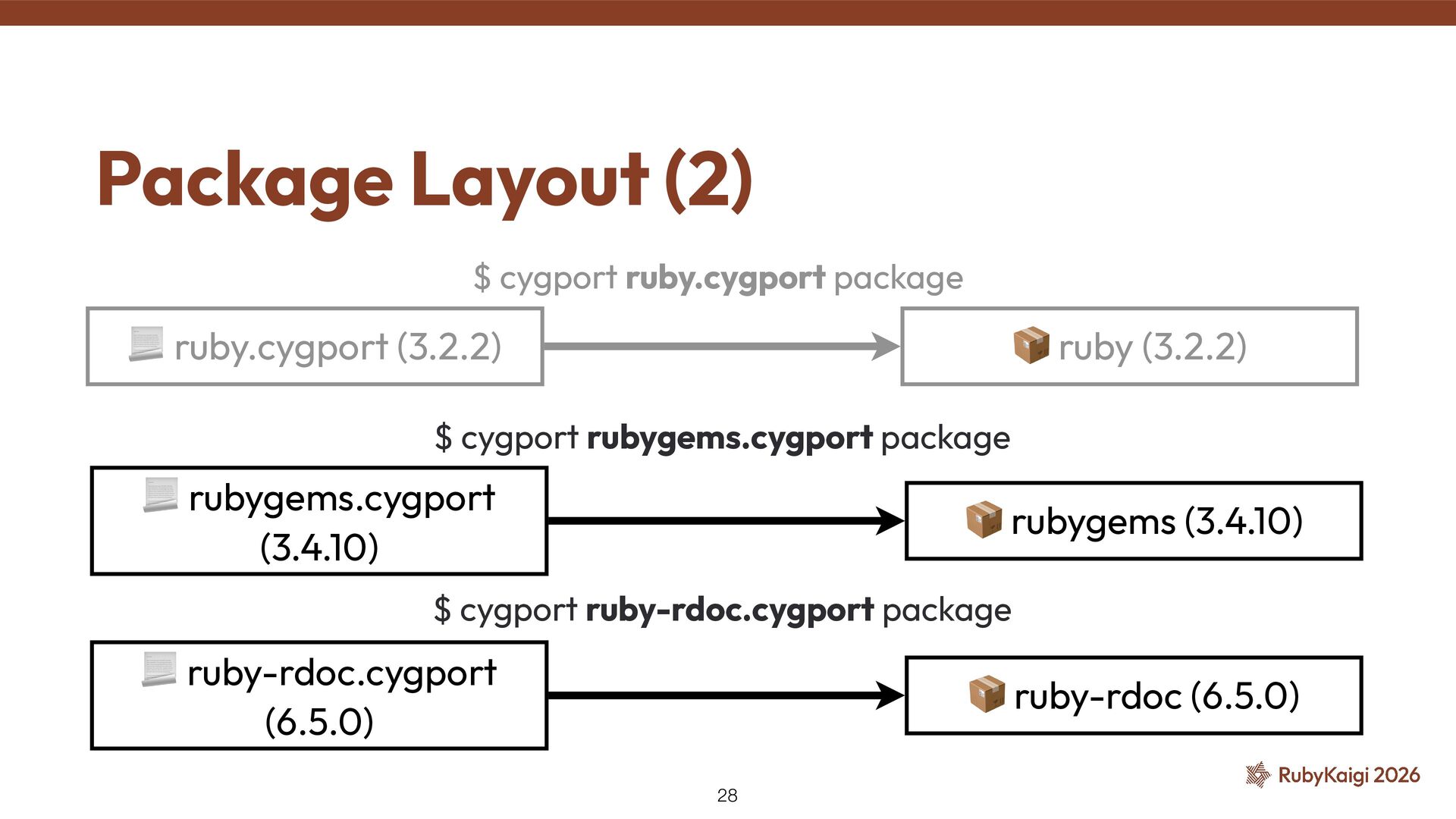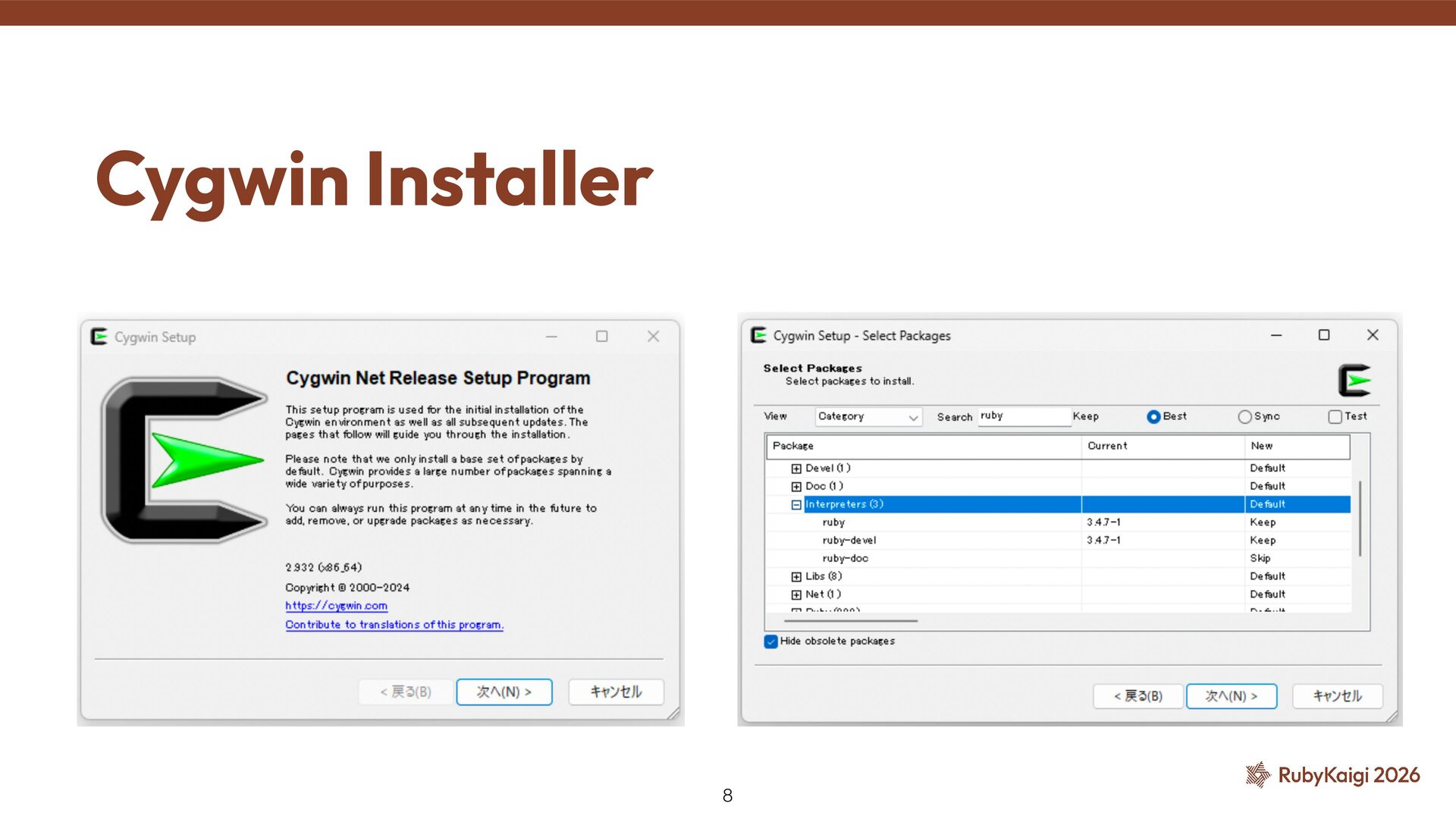 → package becomes orphaned ˒ Orphaned = no active maintainer ˒ Ruby went orphaned after 2.6 ˒ Ruby commi tt ers had no Cygwin maintainer either [1] The Orphaned Package 11 [1] h tt ps://github.com/ruby/ruby/blob/master/doc/maintainers.md