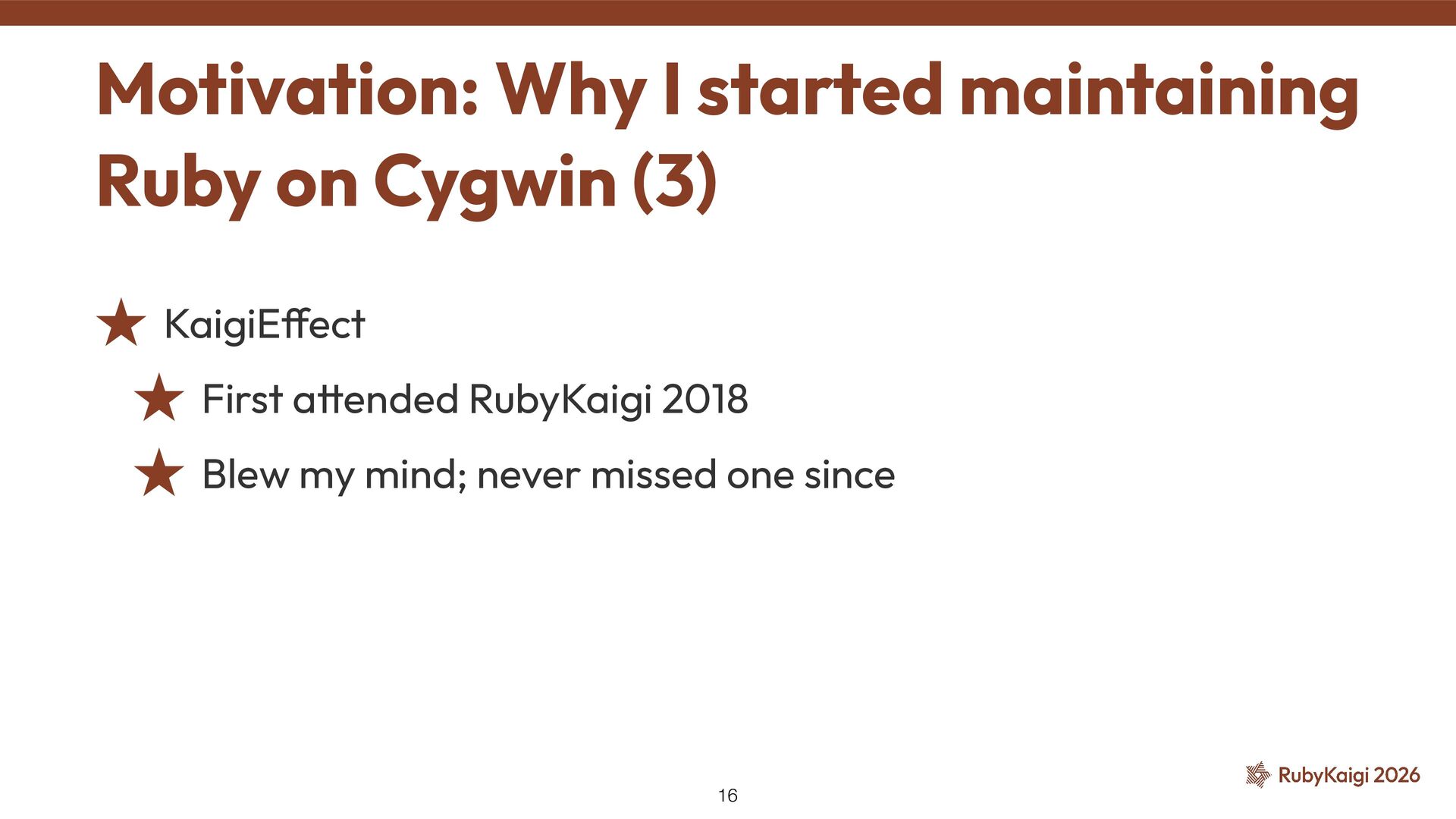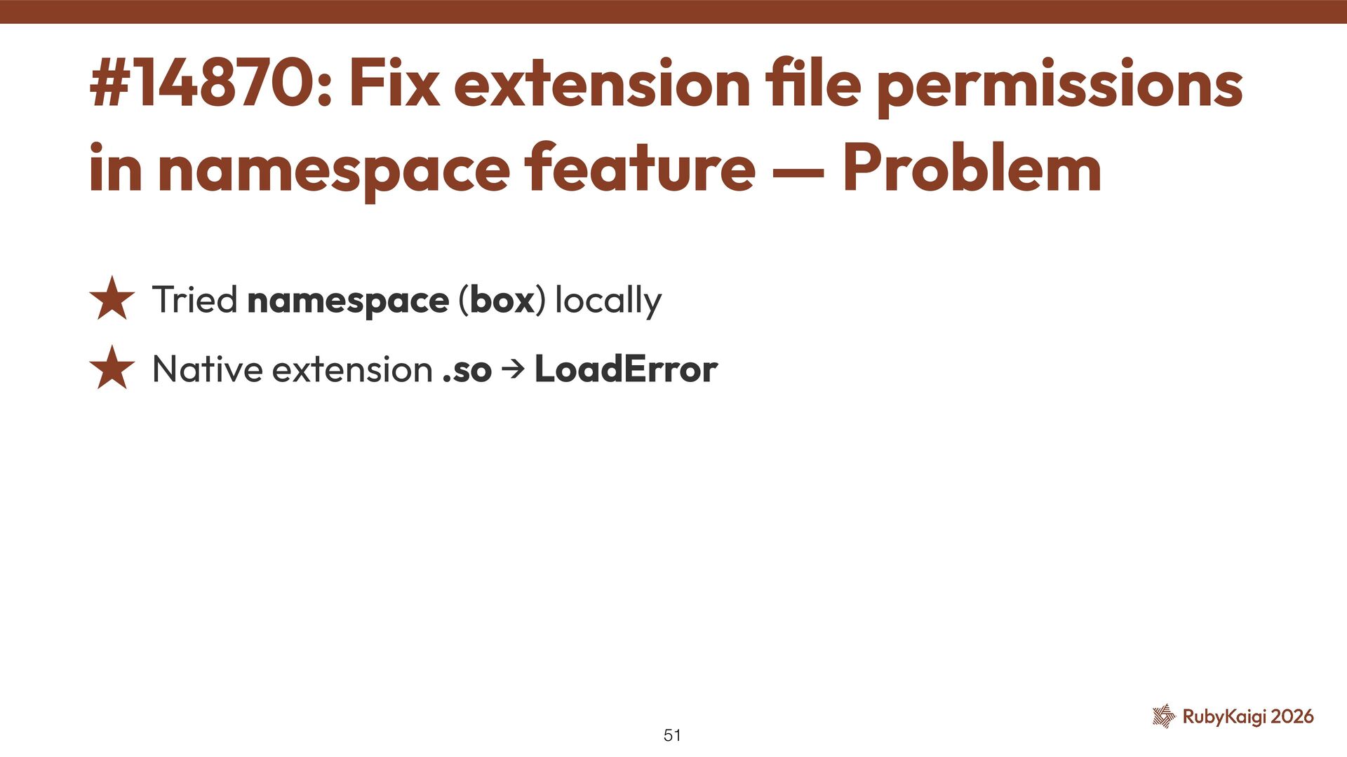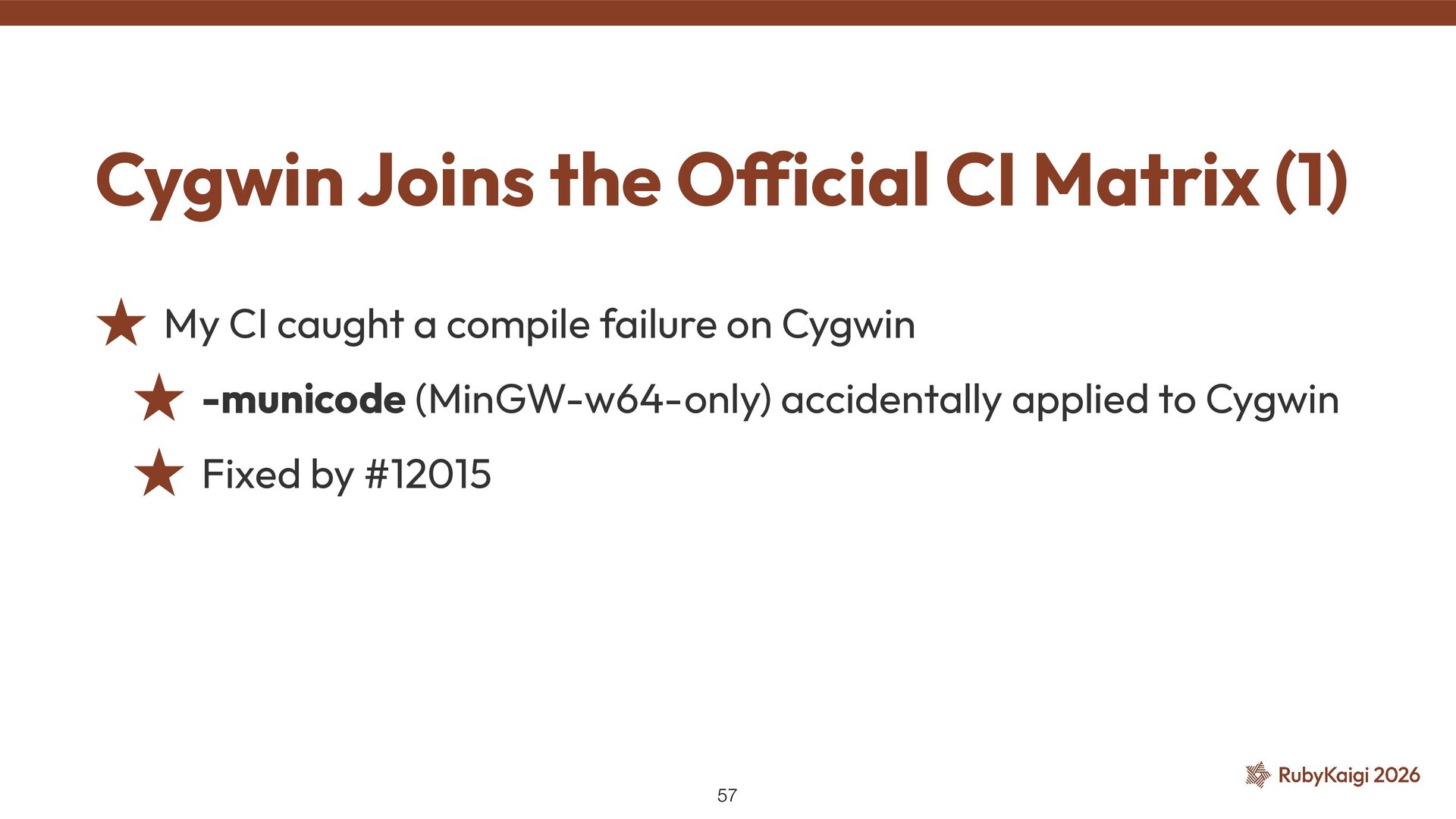 de fi ned(__CYGWIN__) ˒ native_thread_init_stack() was skipped ˒ Tried removing the exclusion → SEGV was gone ˒ But why? 🤔 ˒ Kept digging to fi nd the reason #9269: Use native_thread_init_stack — Problem 40