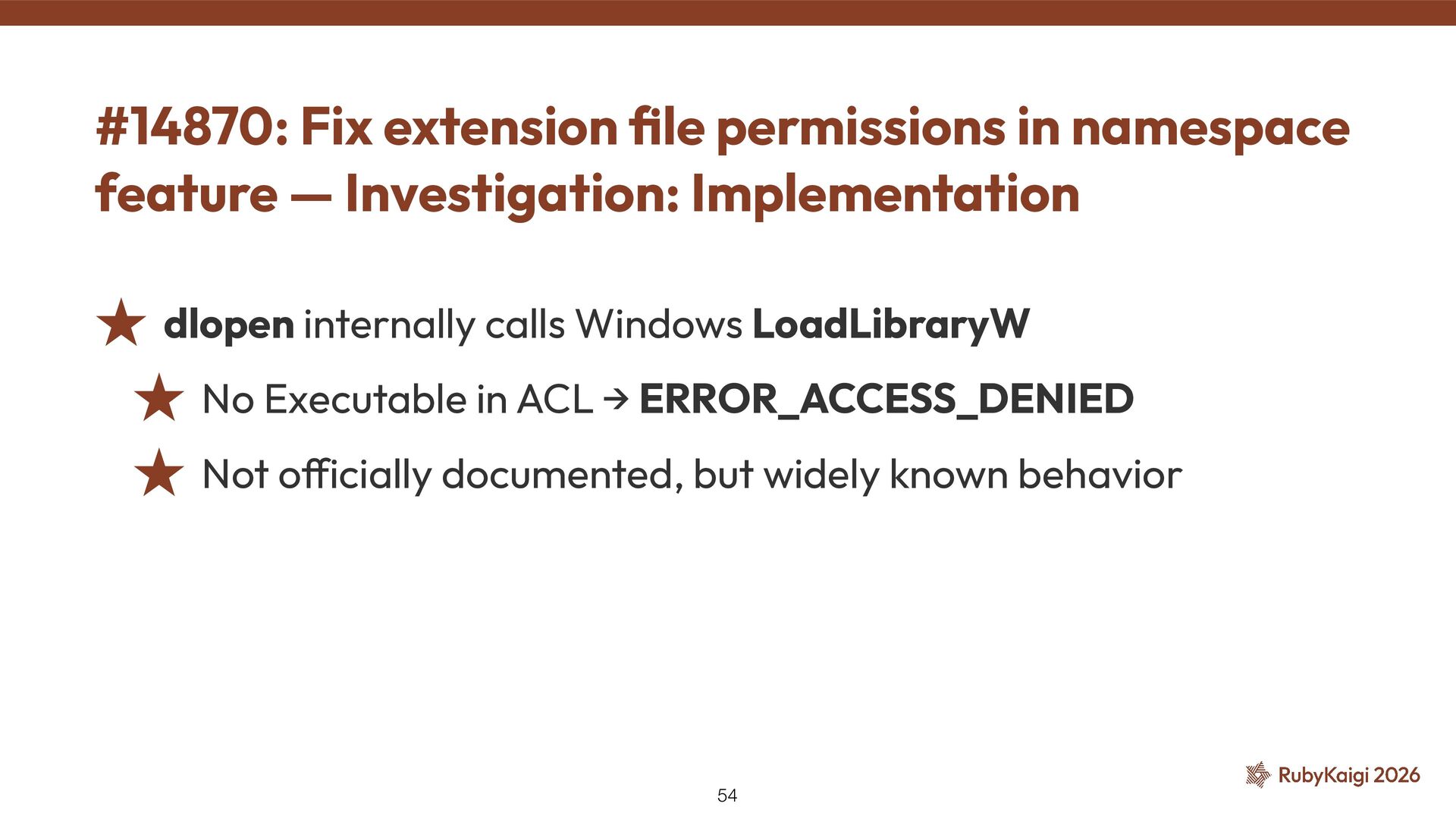 ACL → ERROR_ACCESS_DENIED ˒ Not o ff icially documented, but widely known behavior #14870: Fix extension fi le permissions in namespace feature — Investigation: Implementation 54