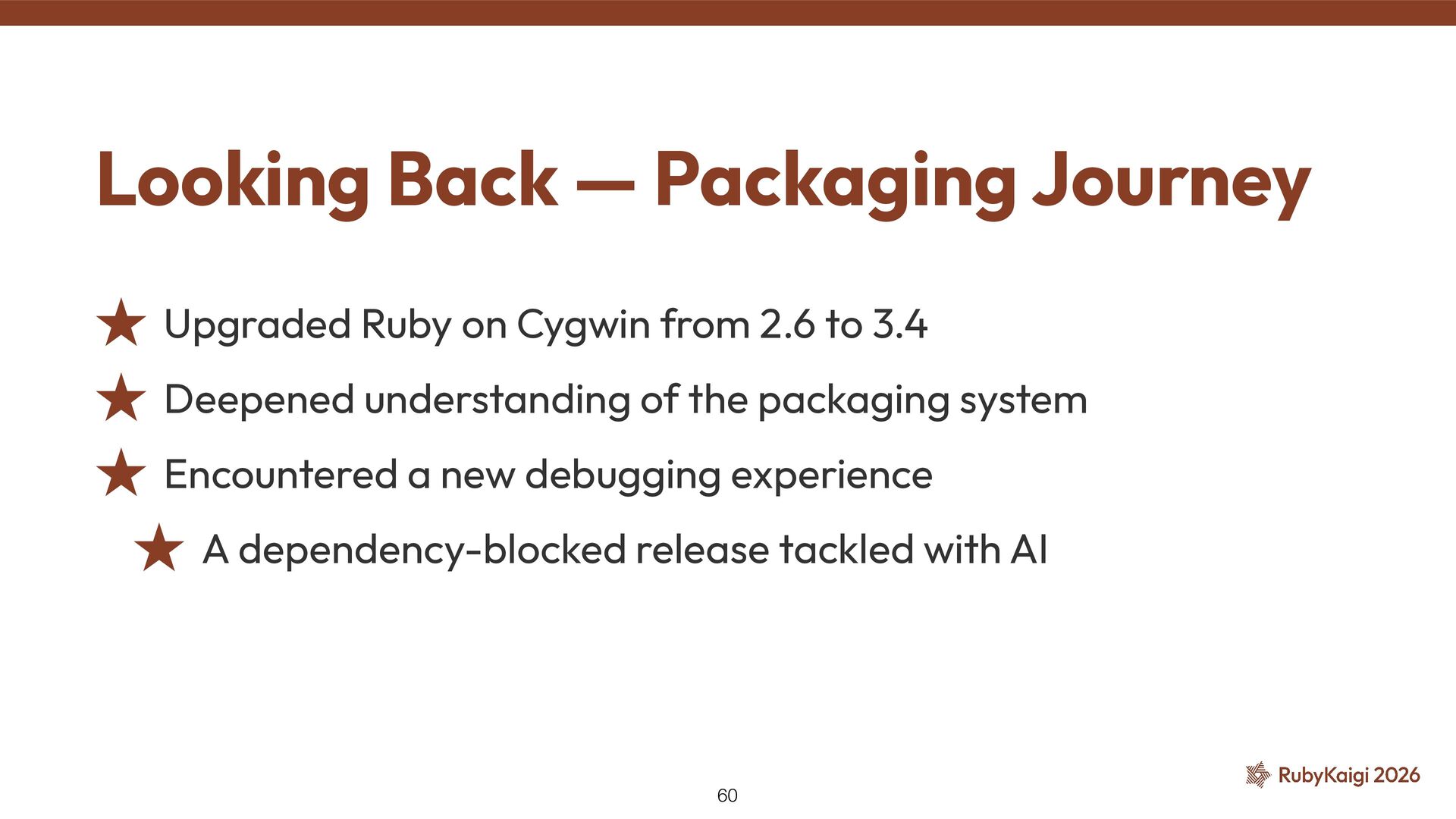 Deepened understanding of the packaging system ˒ Encountered a new debugging experience ˒ A dependency-blocked release tackled with AI Looking Back — Packaging Journey 60