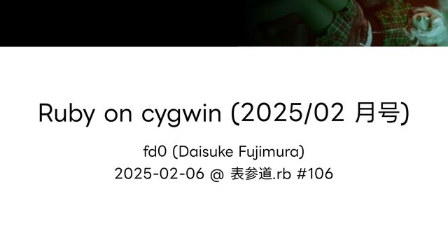 Ruby on cygwin (2025/02 月 号) fd0 (Daisuke Fujimura) 2025-02-06