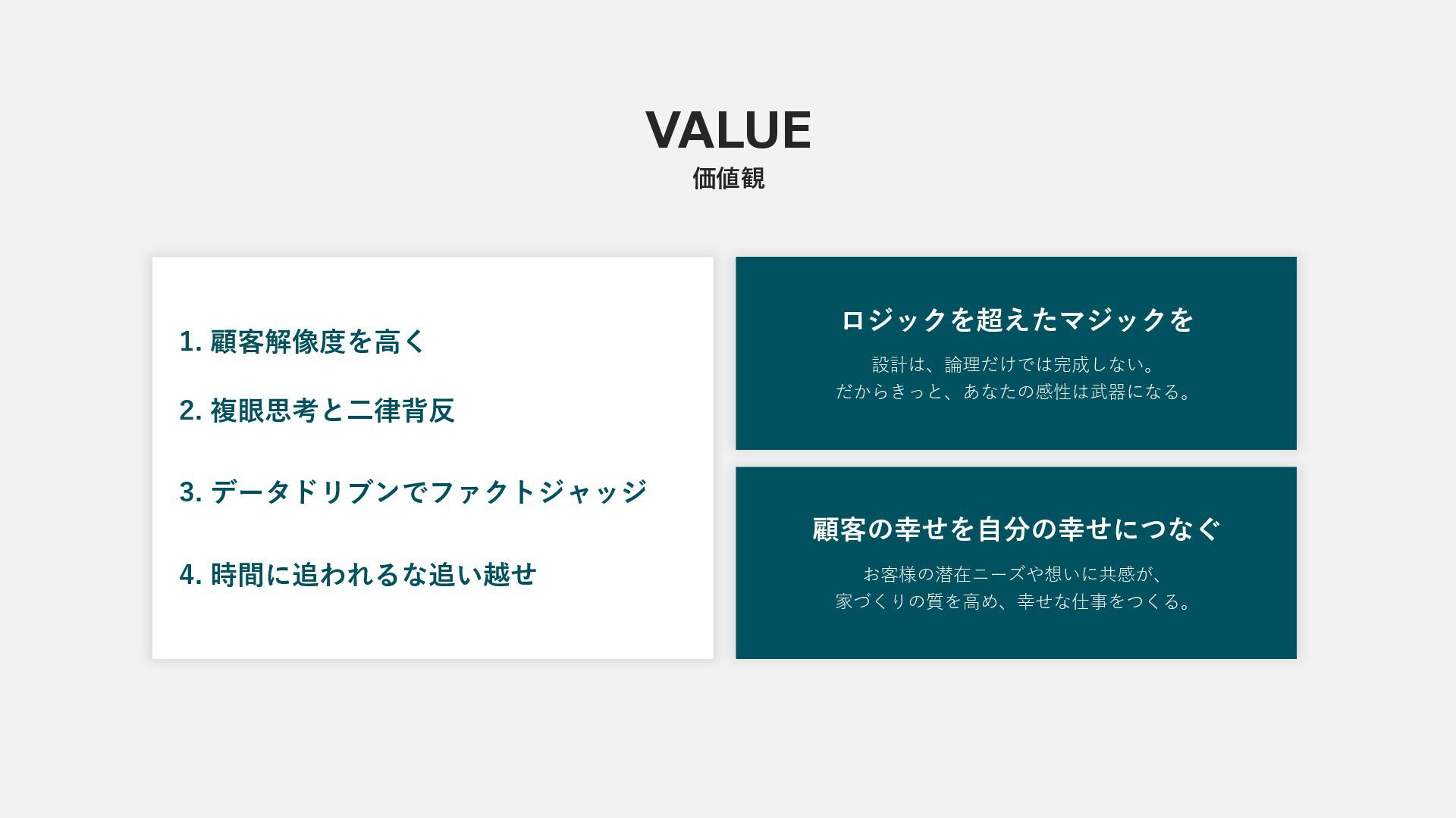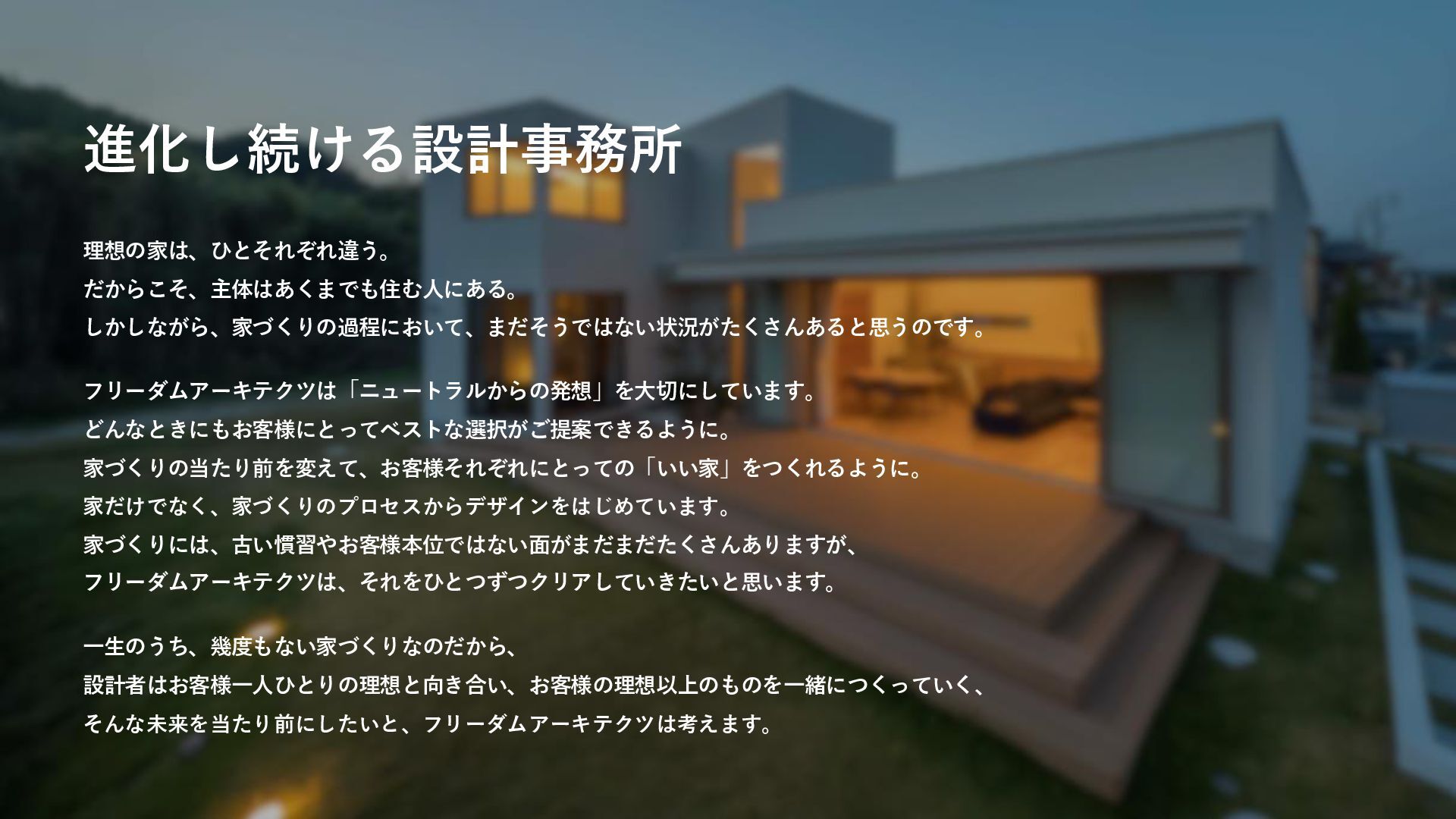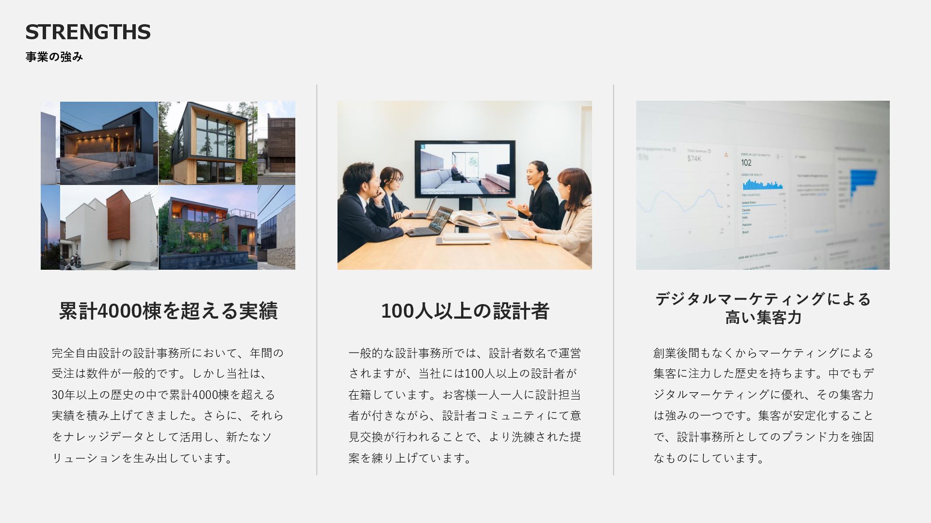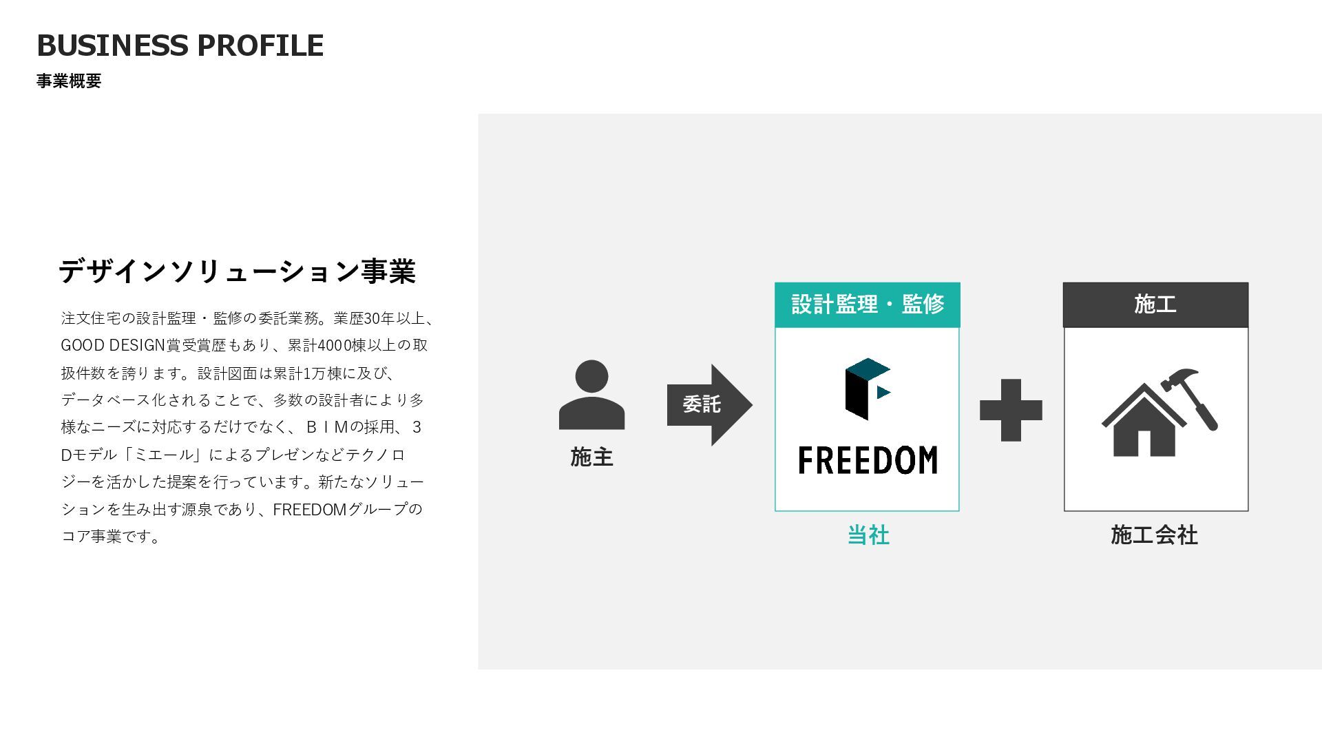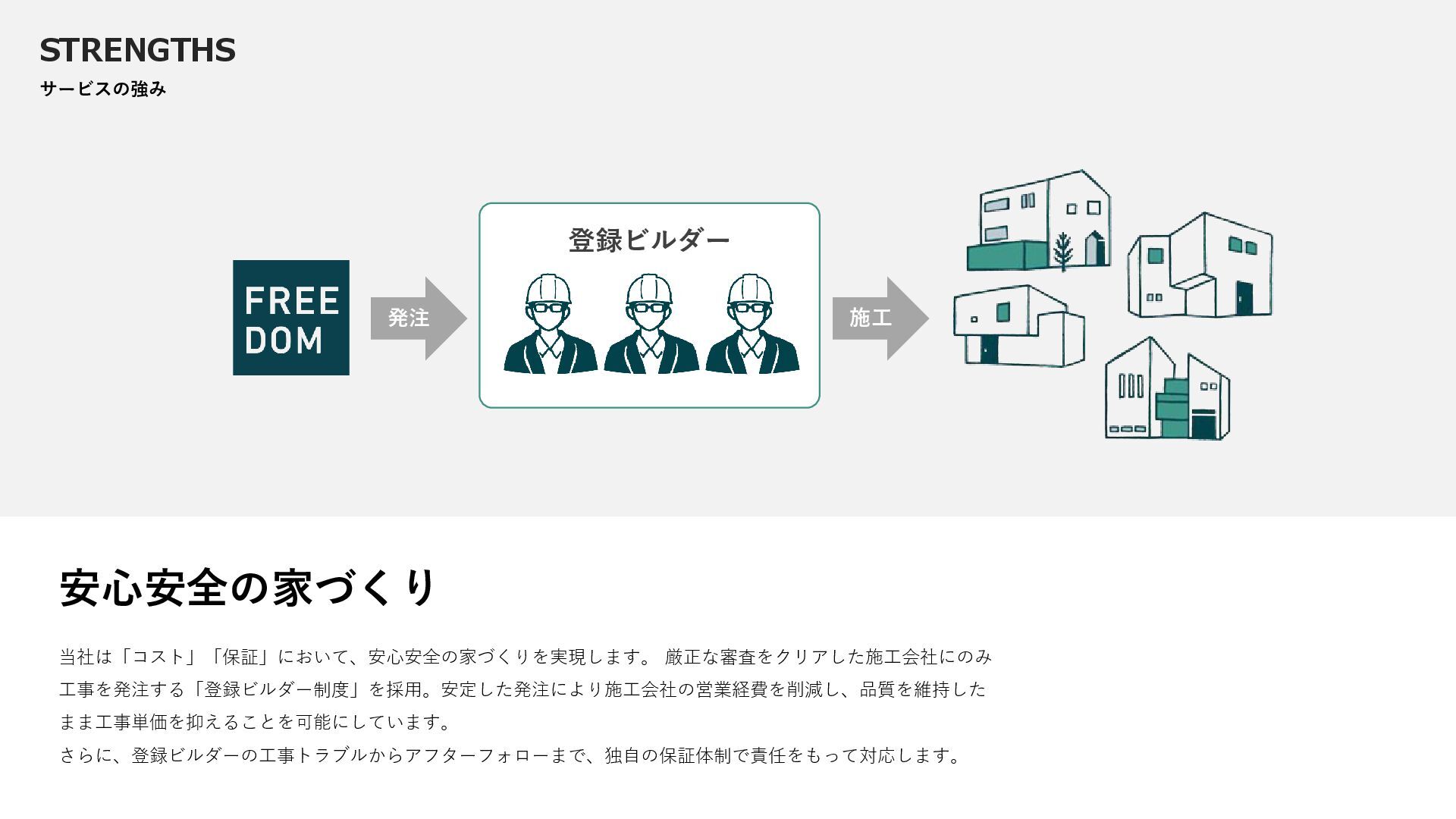 SERVICE 専任の設計者がお客様に寄り添い、具 体的な間取り、窓やドアの配置を決め ます。 グループ会社が提供する”ランディ” による効率的な土地探し体験を提供。 土地・建物・お金のトータルバラ ンスを考慮して提案します。 設計者がお客様のライフスタイルに 最適なプランを提案します。 工事が問題なく行われてい るか、現地に赴き品質を監 理します。 幅広い仕様の中から、最適なものを ピックアップし、詳細な設計に落とし 込んでいきます。 コンサルタント 土地・資金関連を全面サポート プランナー プラン作成や提案などの基本設計を担当 アーキテクト 実施図面の作成や提案などの実施設計、工事監理を担当