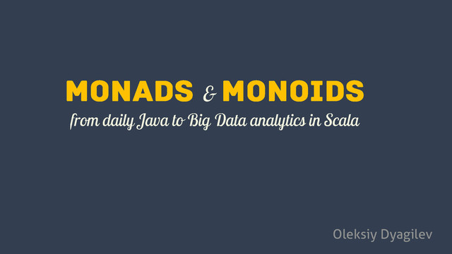 Finally, after two decades of evolution, Java 8 made a step towards functional programming. What can Java learn from other mature functional languages? How to leverage obscure mathematical abstractions such as Monad or Monoid in practice? Usually people find it scary and difficult to understand. Oleksiy will explain these concepts in simple words to give a feeling of powerful tool applicable in many domains, from daily Java and Scala routines to Big Data analytics with Storm or Hadoop.
