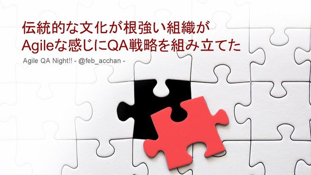 伝統的な文化が根強い組織が Agileな感じにQA戦略を組み立てた Agile QA Night!! - @feb_acchan -