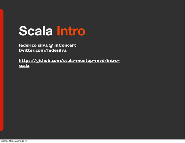 el sistema como queramos • El type system es poderoso y en general no se mete en el camino • Sintaxis flexible: Crea tu propio lenguaje viernes 18 de enero de 13