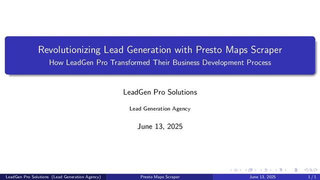 Transformed Their Business Development Process LeadGen Pro Solutions Lead Generation Agency June 13, 2025 LeadGen Pro Solutions (Lead Generation Agency) Presto Maps Scraper June 13, 2025 1 / 1