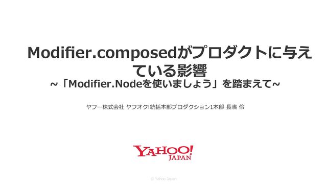 Yahoo Japan ~「Modifier.Nodeを使いましょう」を踏まえて~ Modifier.composedがプロダクトに与え ている影響 ヤフー株式会社 ヤフオク!統括本部プロダクション1本部 ⻑濱 伶