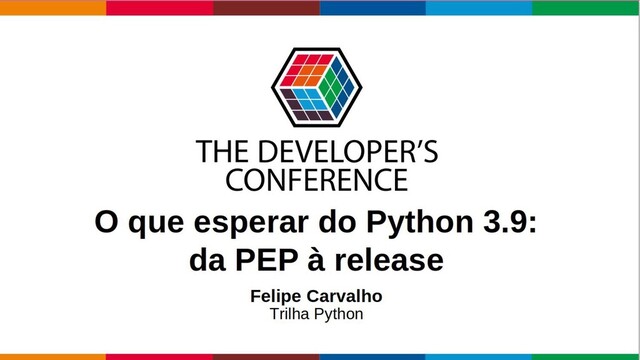 de 2019; • Define um calendário de lançamentos para as próximas versões do Python, a partir da 3.9; • Estabelece releases anuais, sempre em outubro; • Entre as vantagens dessa medida, temos: • Fazer as releases menores - e assim reduzir o atrito provocado pelas mudanças; • Trazer novas funcionalidades e bug fixes o quanto antes para os usuários; • Criar um calendário previsível com lançamentos em outubro e a fase beta no final de maio (após os sprints da PyCon US); • Sincronizar o cronograma com distros como o Fedora (que tem auxiliado a encontrar regressões antecipadas);