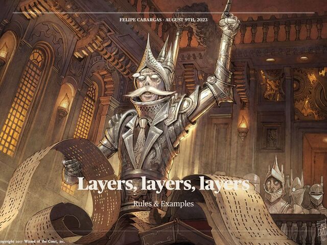 have to deal with multiple Continuous Effects (CR 613) when these are trying to apply to the same object. • There is 7 layers de fi ned in the rules (CR 613.1). FELIPE CABARGAS - AUGUST 9TH, 2023