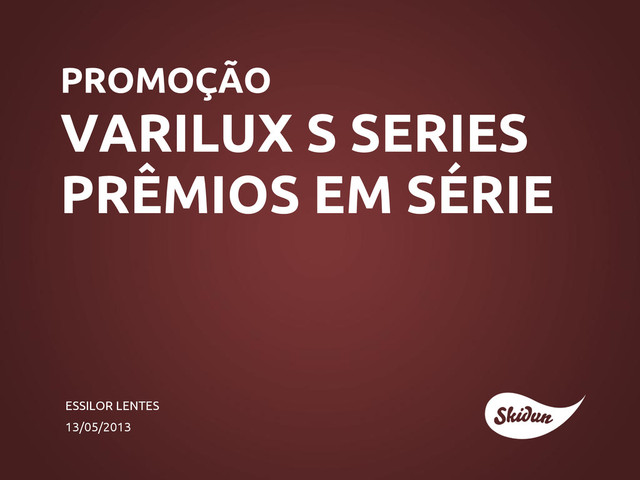 1. O vendedor cadastra suas vendas no site proessilor.com.br e a cada 3 pares da lente Varilux S Series vendidos no mês ele tem direito a 1 brinde. 2. Semanalmente, o vendedor que tiver direito, a pelo menos 1 brinde, receberá por e-mail uma notificação de quantos brindes tem direito, assim como o link para resgatá-los. 3. Na página de resgate, o vendedor seleciona o brinde que deseja, informa o endereço de entrega, dados pessoais e da óptica em que trabalha. Dentro de alguns dias, a Essilor envia o brinde para o endereço informado.