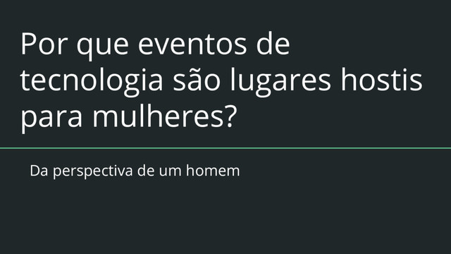 Você já se perguntou porque mulheres estão sempre em números tão pequenos nos eventos de tecnologia, cursos universitários de engenharias e computação? Não venha me dizer que isso são coisas de homem ou que mulheres não têm interesse por isso pois eu também já pensei isso e descobri que estava muito errado.