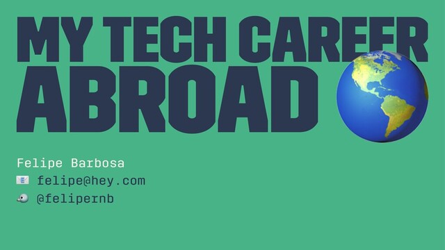 UFCG » Before graduating I was: » Working as a freelancer and consultant » Intern student at the Distributed Systems Lab at UFCG » Participating in open source projects » Speaking at tech conferences ! @felipernb