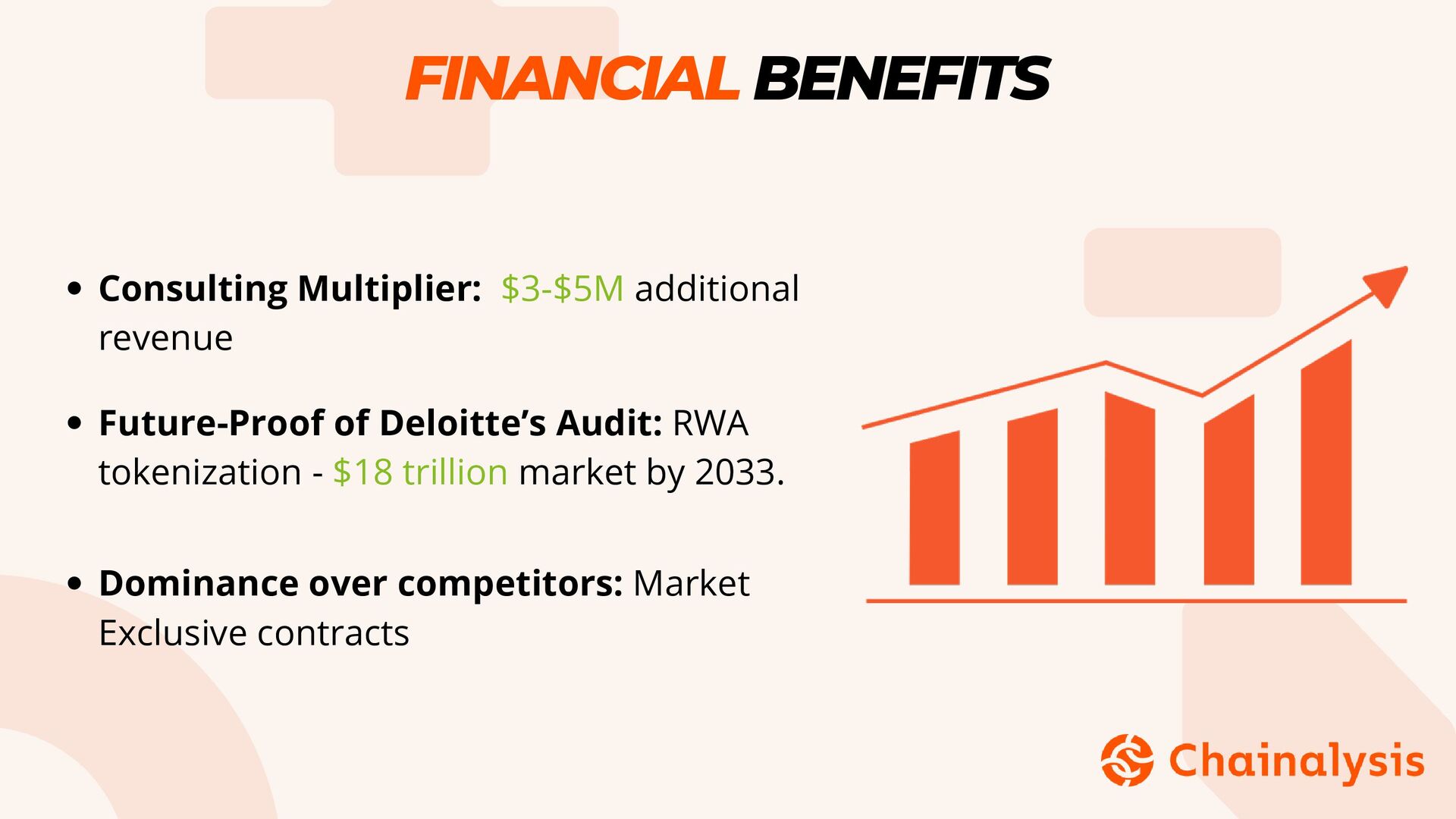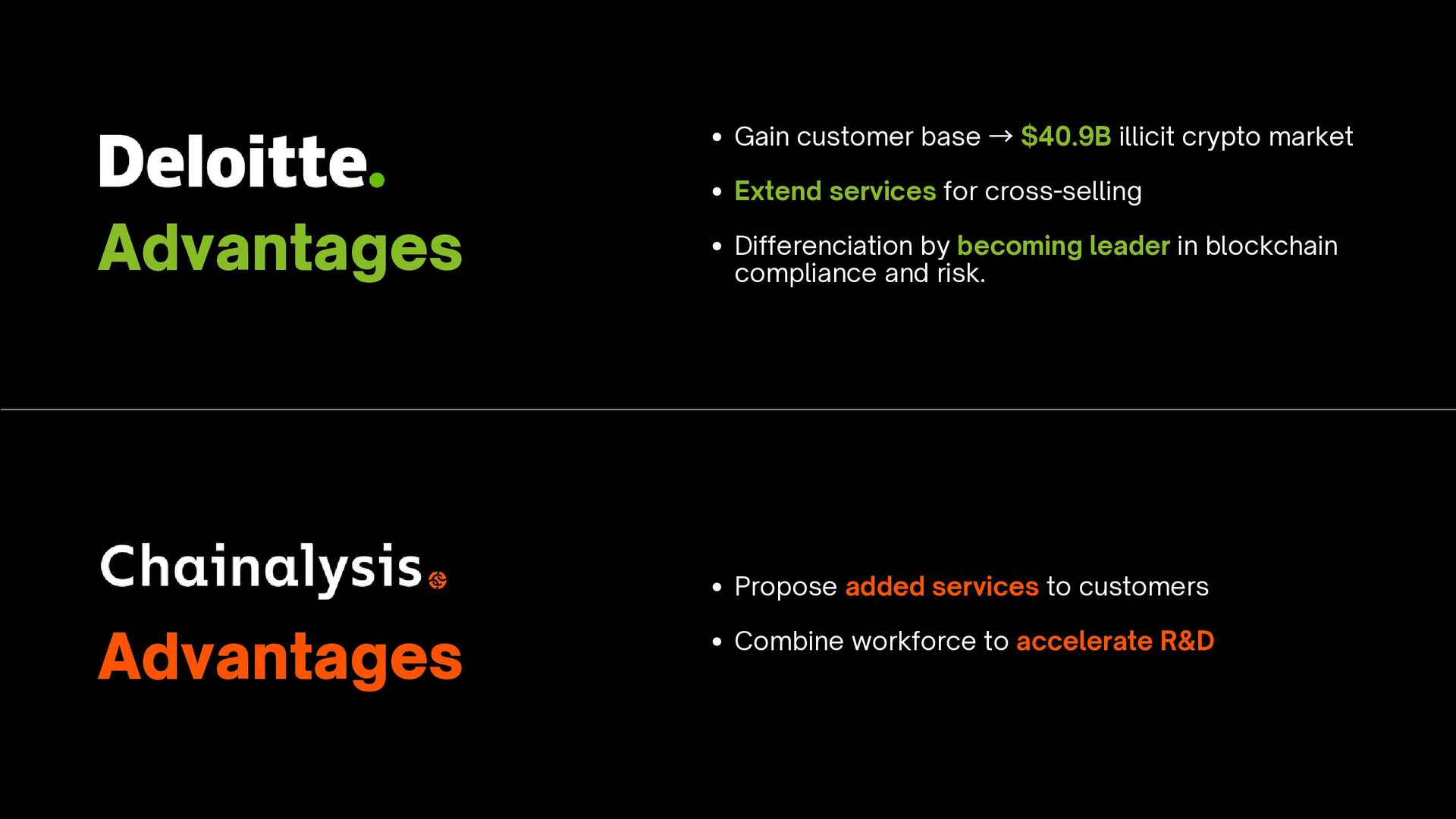Extend services for cross-selling Differenciation by becoming leader in blockchain compliance and risk. Advantages Propose added services to customers Combine workforce to accelerate R&D
