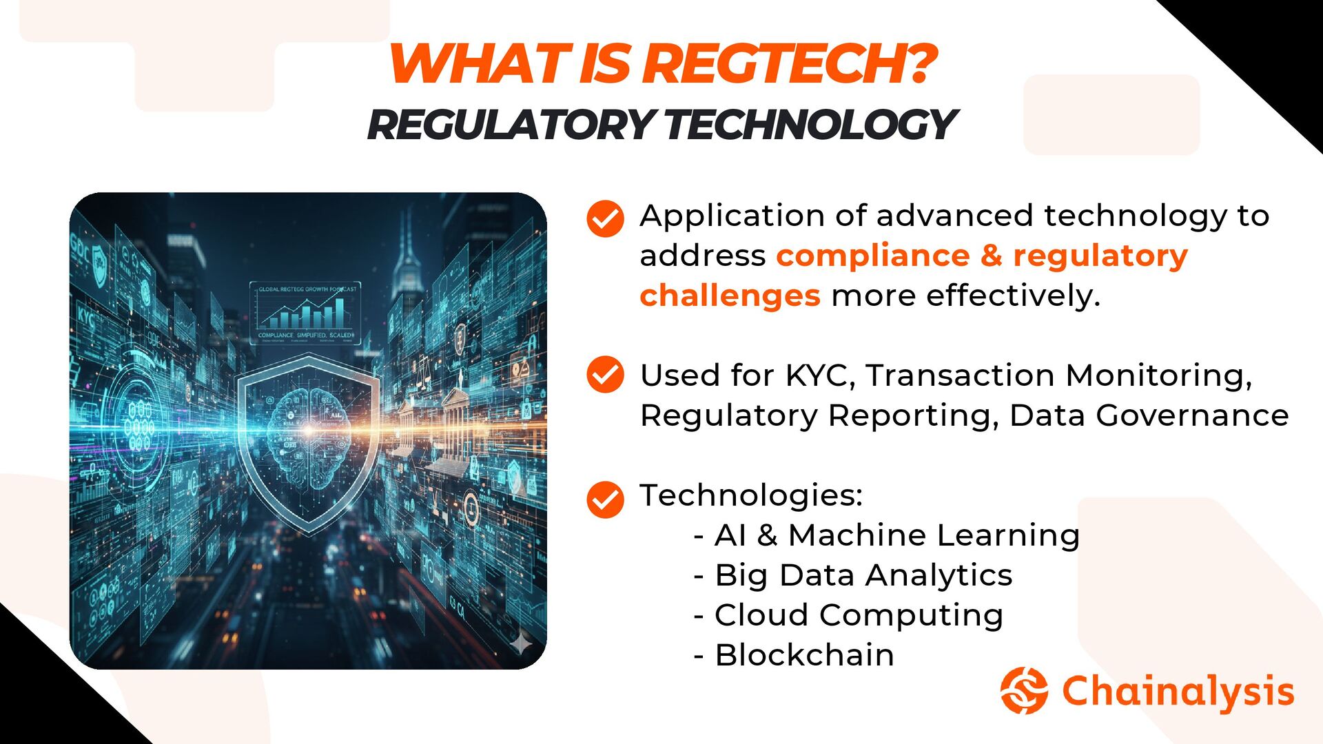 more effectively. Used for KYC, Transaction Monitoring, Regulatory Reporting, Data Governance Technologies: - AI & Machine Learning - Big Data Analytics - Cloud Computing - Blockchain WHAT IS REGTECH? REGULATORY TECHNOLOGY