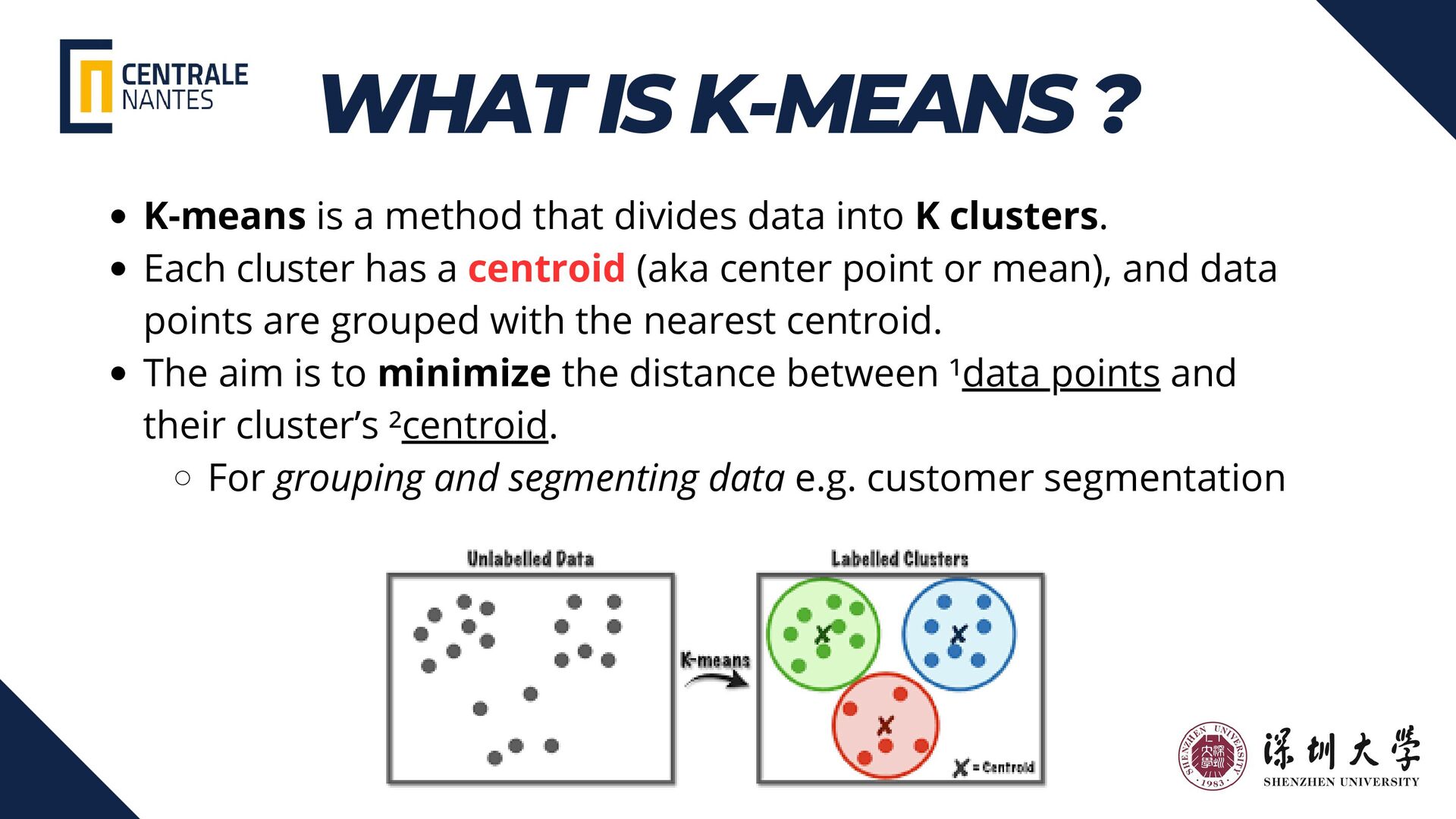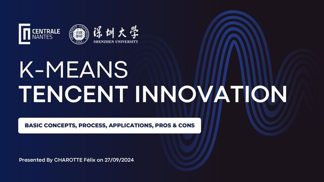 This presentation introduces K-Means clustering, covering its core concepts, step-by-step process, real-world applications, and advantages and limitations. Designed for aspiring members of the Tencent Innovation Club, it highlights how K-Means can drive practical machine learning solutions and data-driven innovation.