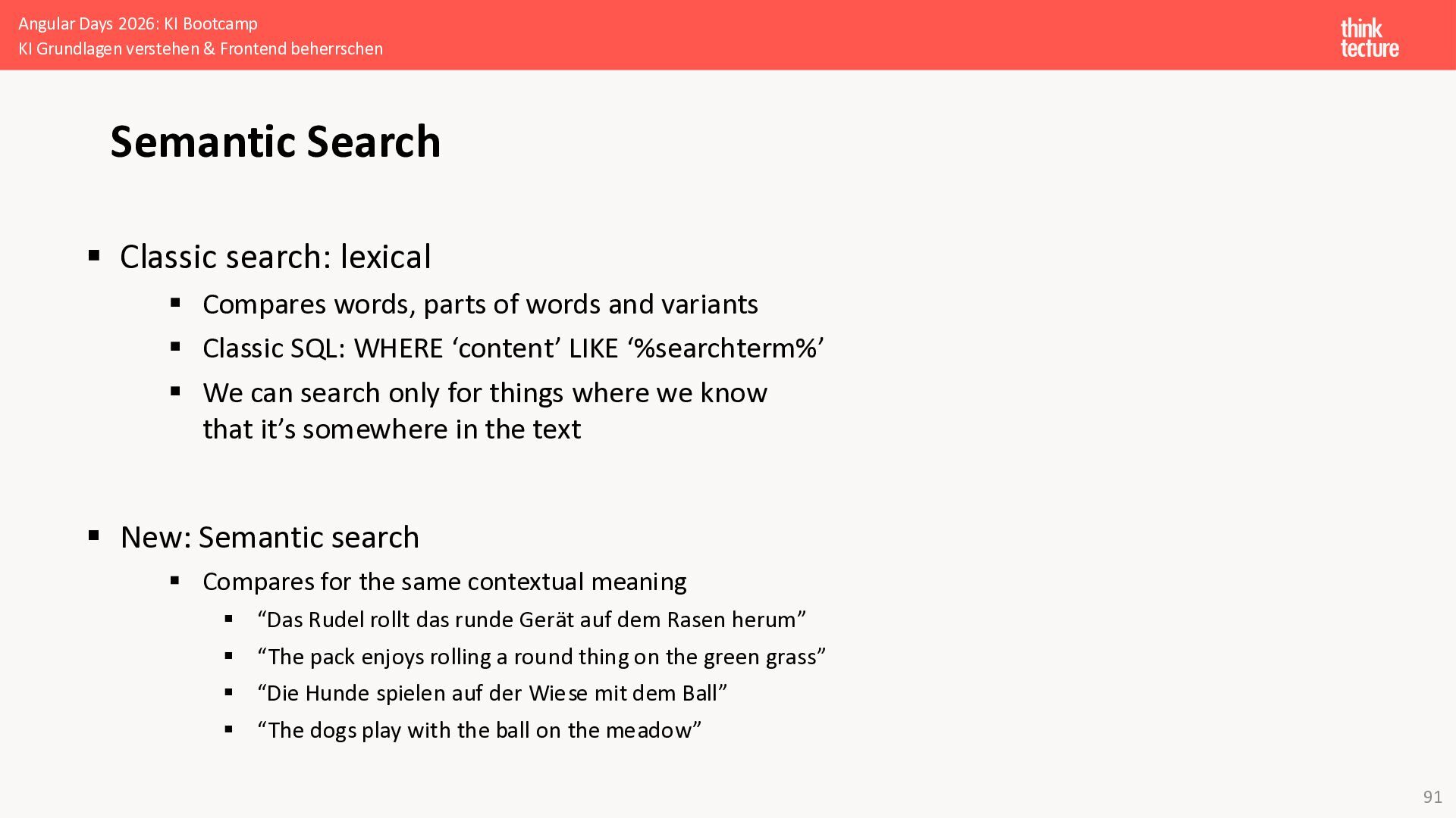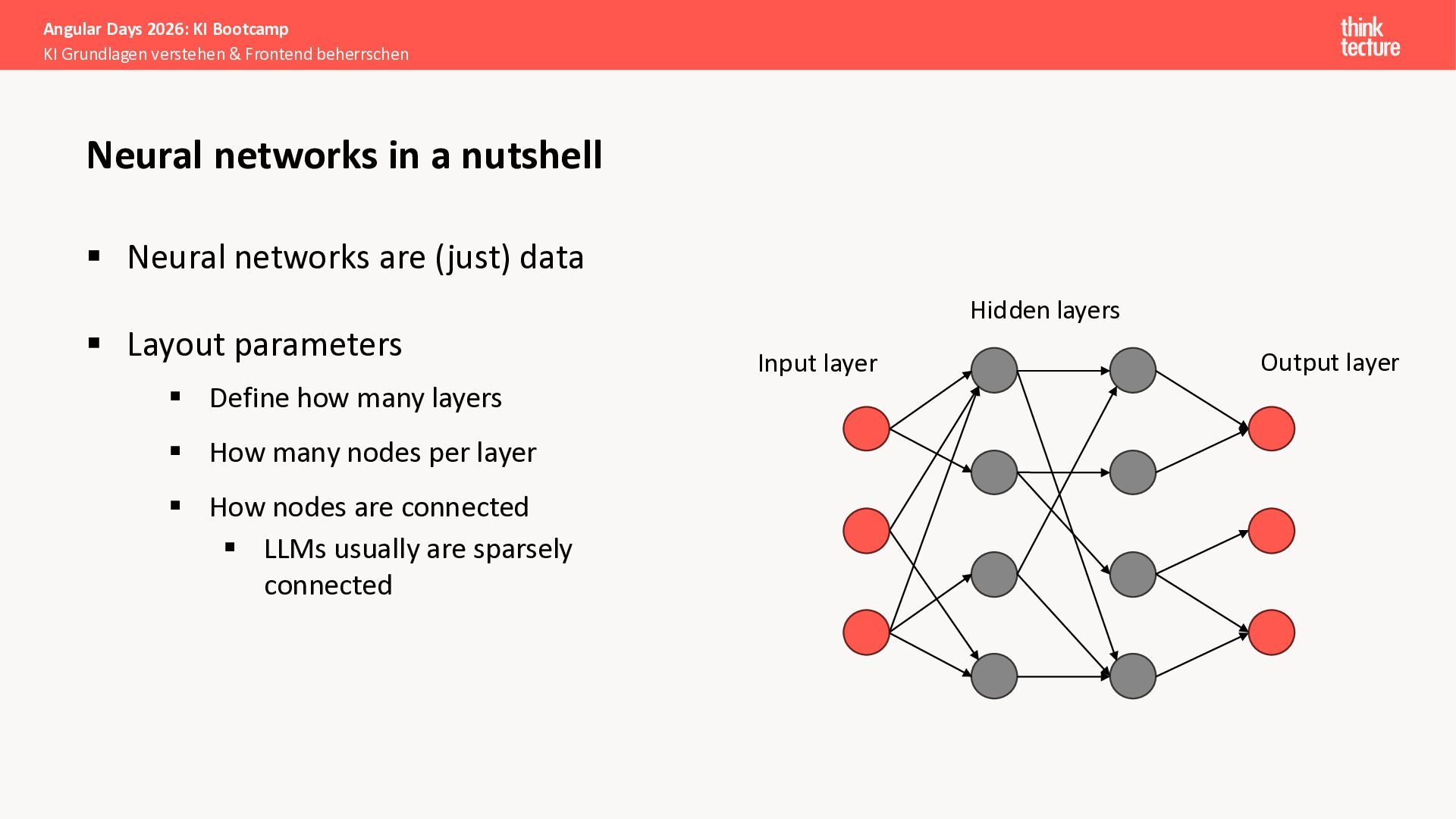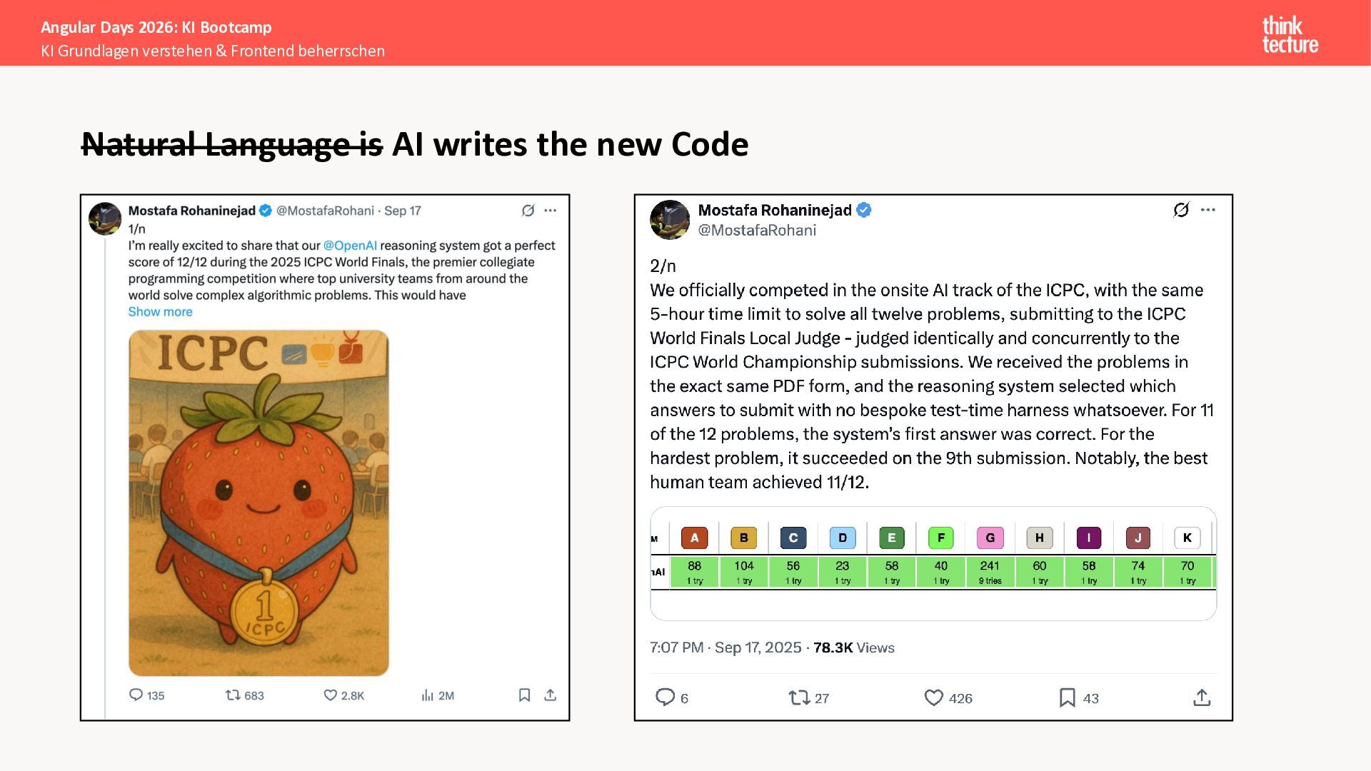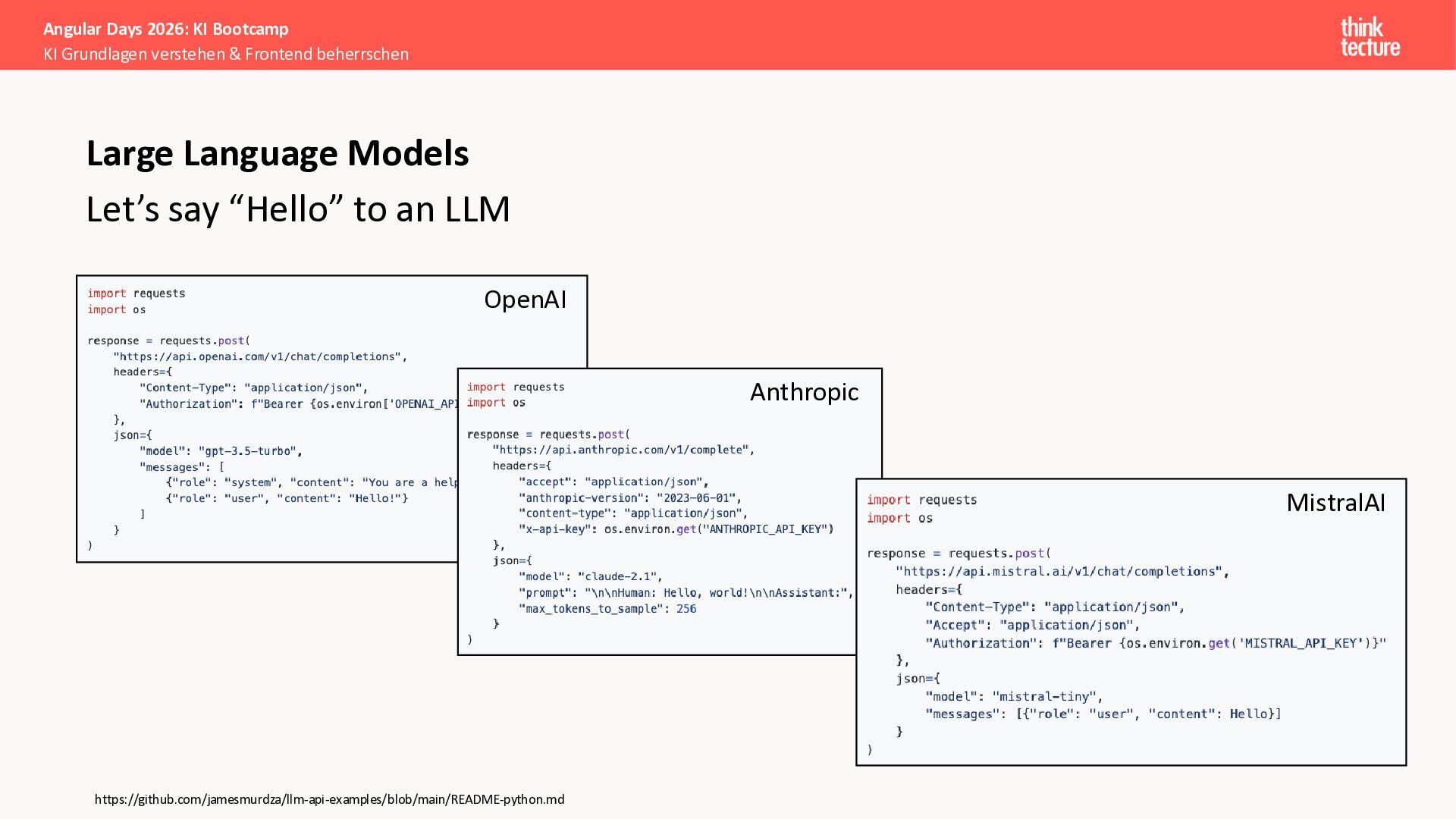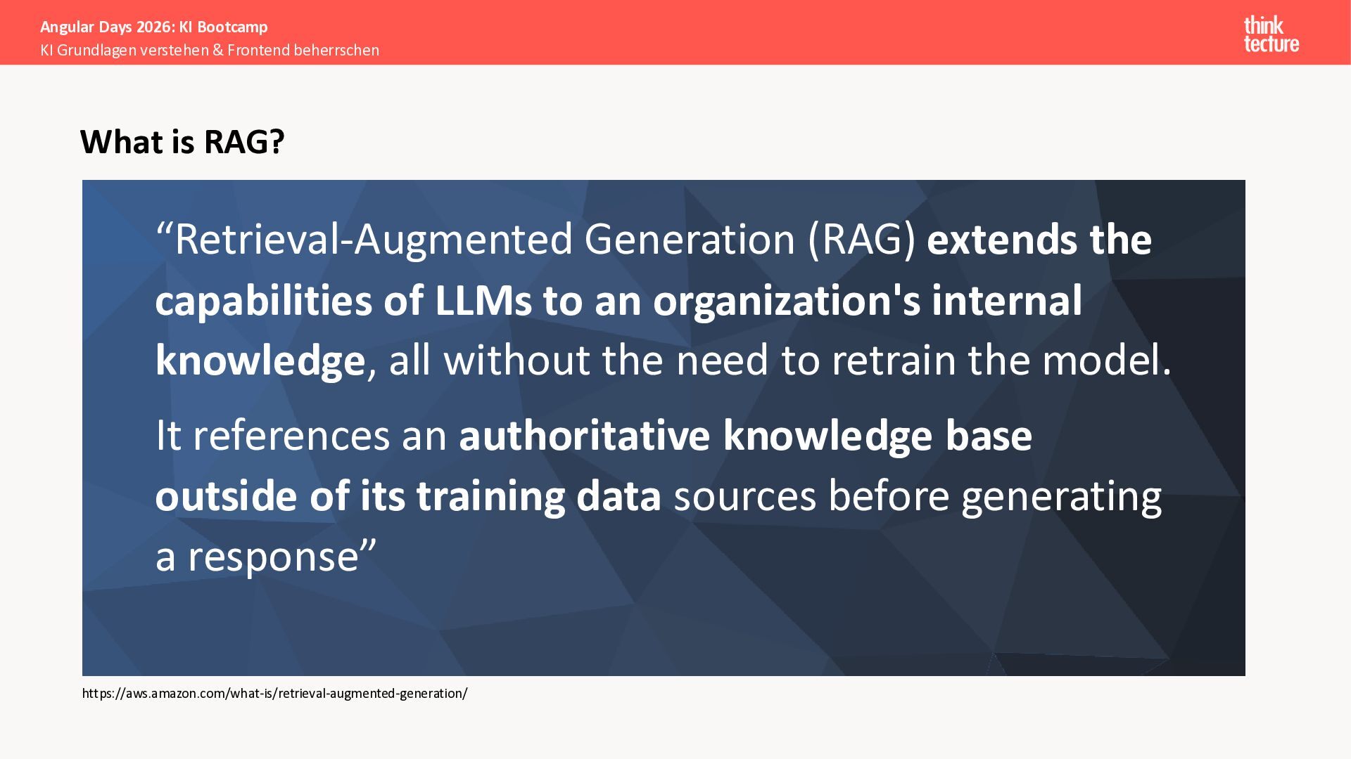 Der Fokus liegt auf modernen Frontend-Herausforderungen: optimaler API-Konsum, Streaming-Implementation für Echtzeit-Antworten, Darstellung von Reasoning-Prozessen bei Thinking-Modellen und die Erweiterung von Anwendungen um TypeScript-basierte MCP Server, die dem AI-Backend Zugriff auf Unternehmensdaten ermöglichen.