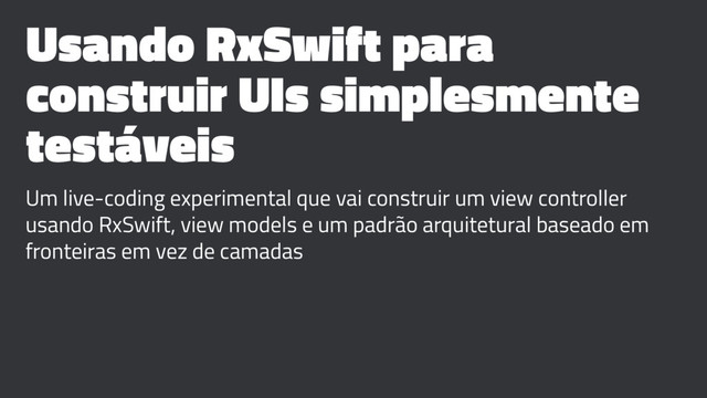 Um live-coding experimental que vai construir um view controller usando RxSwift, view models e um padrão arquitetural baseado em fronteiras em vez de camadas