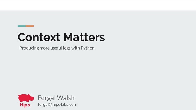 the path? ◦ Which domain? ◦ Which user? ◦ What browser/client are they using? ◦ What is their IP? ◦ What did they ask us? • Which server are we? • Which version of the app is this? • How did we even get here? Context