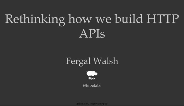 not trying to be RESTful we relieve ourselves of a huge burden (and endless debate about correctness). Pico APIs are pragmatic, optimising for ease of use and ease of development over theoretical correctness.