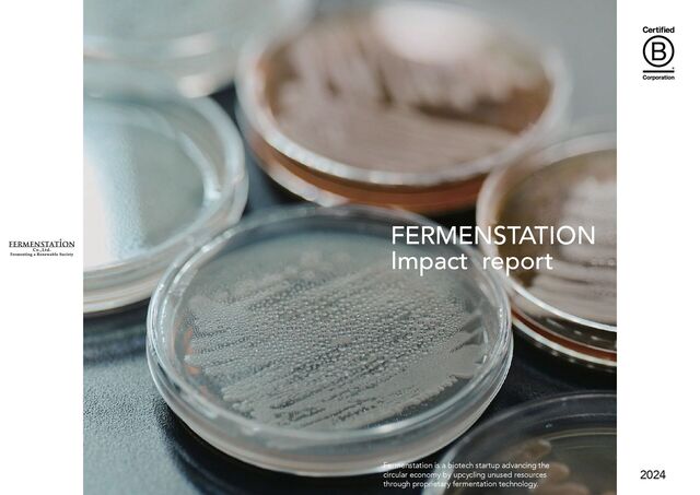 and create a multifaceted impact where one solution will also solve other issues. Among these, we are currently focusing particularly on three key challenges: waste, petroleum dependence, and resource scarcity. The realization of a circular society can help solve a wide range of social issues. As introduced in the Purpose section, we aim to realize “Fermenting a Renewable Society” by discovering new value in unused resources and building a society based on regeneration and circulation. Rather than simply acting as a vendor handling unused resources, we are working toward expanding foundational technologies and platforms that transcend industries. Therefore, instead of focusing on a single specific issue, one of the distinctive features of Fermenstation’s business is its multi-faceted approach that seeks to generate multi-dimensional impacts, where a single solution contributes to resolving multiple interconnected social issues. In particular, by viewing waste as unused resources and addressing the issue through an approach of fermentation upcycling, we believe we can also contribute to solving petroleum dependence and resource scarcity. First, regarding the issue of waste: In today’s society, which is based on mass production and mass disposal, many unused resources that could otherwise be utilized end up incinerated or landfilled as industrial waste or household garbage. This leads to environmental problems such as CO₂ emissions and soil degradation. Although some progress has been made in the utilization of unused resources, such as converting them into fertilizers or animal feed, further expansion is urgently needed. Fermenstation places particular emphasis on reducing food waste. According to estimates by UNEP (United Nations Environment Programme), food waste accounts for about one-third of global food production, and 8% to 10% of global greenhouse gas emissions are attributed to food waste. The fact that countries around the world have set food waste reduction targets for 2030 based on the SDGs underscores that this is a global common challenge. In Japan as well, according to estimates by the Ministry of Agriculture, Forestry and Fisheries, food waste in fiscal 2021 amounted to 24.02 million tons, of which 7.32 million tons came from households and 16.7 million tons mainly from food manufacturing processes. About 80% of the waste generated during food manufacturing is recycled, but 90% of that is limited to use as animal feed or fertilizer. Fermenstation focuses on upcycling food waste into higher value-added materials and products. Through upcycling, it is possible to utilize unused resources as new functional materials, preventing both resource waste and disposal at the same time. Furthermore, beyond food waste, we are also engaged in the utilization of wood generated from forest thinning and logging, stems and leaves left over after pruning and harvesting in agriculture, rice husks generated during grain threshing, biomass, and industrial waste from primary industries, as well as by-products from industrial manufacturing processes. The impact of waste reduction extends to solving issues of petroleum dependence and resource scarcity. By applying upcycling technologies in the emerging field of bio- manufacturing, we are replacing fossil-derived materials like petroleum with bio-based raw materials, and establishing a sustainable manufacturing process that produces useful compounds through the power of microorganisms. According to OECD estimates, the global market for bio- manufacturing is expected to reach approximately 200 trillion yen by 2030. By utilizing upcycled raw materials derived from unused resources, we can contribute to reducing petroleum use and realizing a decarbonized society. In addition, since biomass production is limited in Japan, resource shortages are a concern as bio-manufacturing expands. Furthermore, ensuring transparency of raw materials is also a challenge when sourcing materials from overseas. Against this backdrop, utilizing unused resources such as food waste is an effective approach to promoting sustainable bio-manufacturing. Circulating resources domestically can also help ensure transparency of raw materials and contribute to food security. What we aim for beyond solving these issues is not merely reducing waste, but shifting from a linear consumption model of “use and dispose” to a new upcycling ecosystem. By maximizing the use of unused resources and circulating the value of resources, we are building a new foundation for sustainable bio-manufacturing. We will continue to work together with diverse stakeholders to solve social issues and build a new ecosystem that cannot be achieved by one person or company alone. 014p 013p Fermenting a Renewable Society Impact report 2024