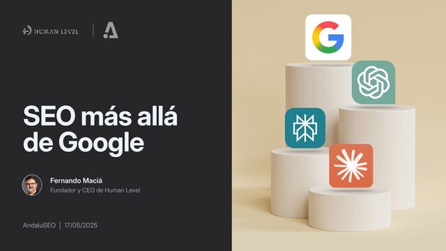 Presentación de Fernando Maciá (Human Level) para AndaluSEO 2025 en la que analiza cómo la irrupción de los buscadores basados en IA está transformando el SEO tradicional, aunque sin destronar a Google.