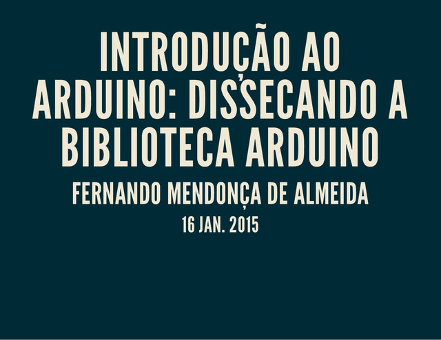 Apresentação utilizada no minicurso Introdução ao Arduino - Dissecando a Biblioteca Arduino realizado durante a SECOMP 2015 da Universidade Federal de Sergipe.