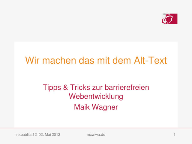 Problematik der Wordpress-Medienverwaltung in Bezug auf die richtige Auszeichnung von Bildern. Gehalten am 02.05.2012 im Rahmen der Republica 2012