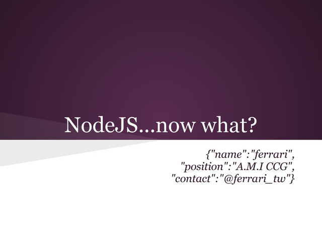 NodeJS...now what? {"name":"ferrari", "position":"A.M.I CCG", "contact":"@ferrari_tw"}