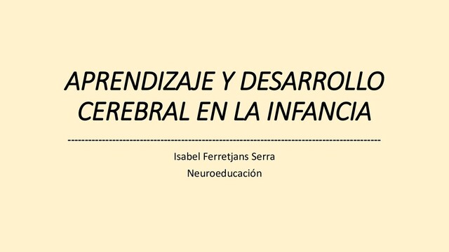 cerebro y Neurogénesis proceso de aprendizaje Crecimiento sináptico y mielinizació Poda Plasticidad Periodos sensibles • Educación en los primeros años La intervención temprana Promoción del aprendizaje en la infancia