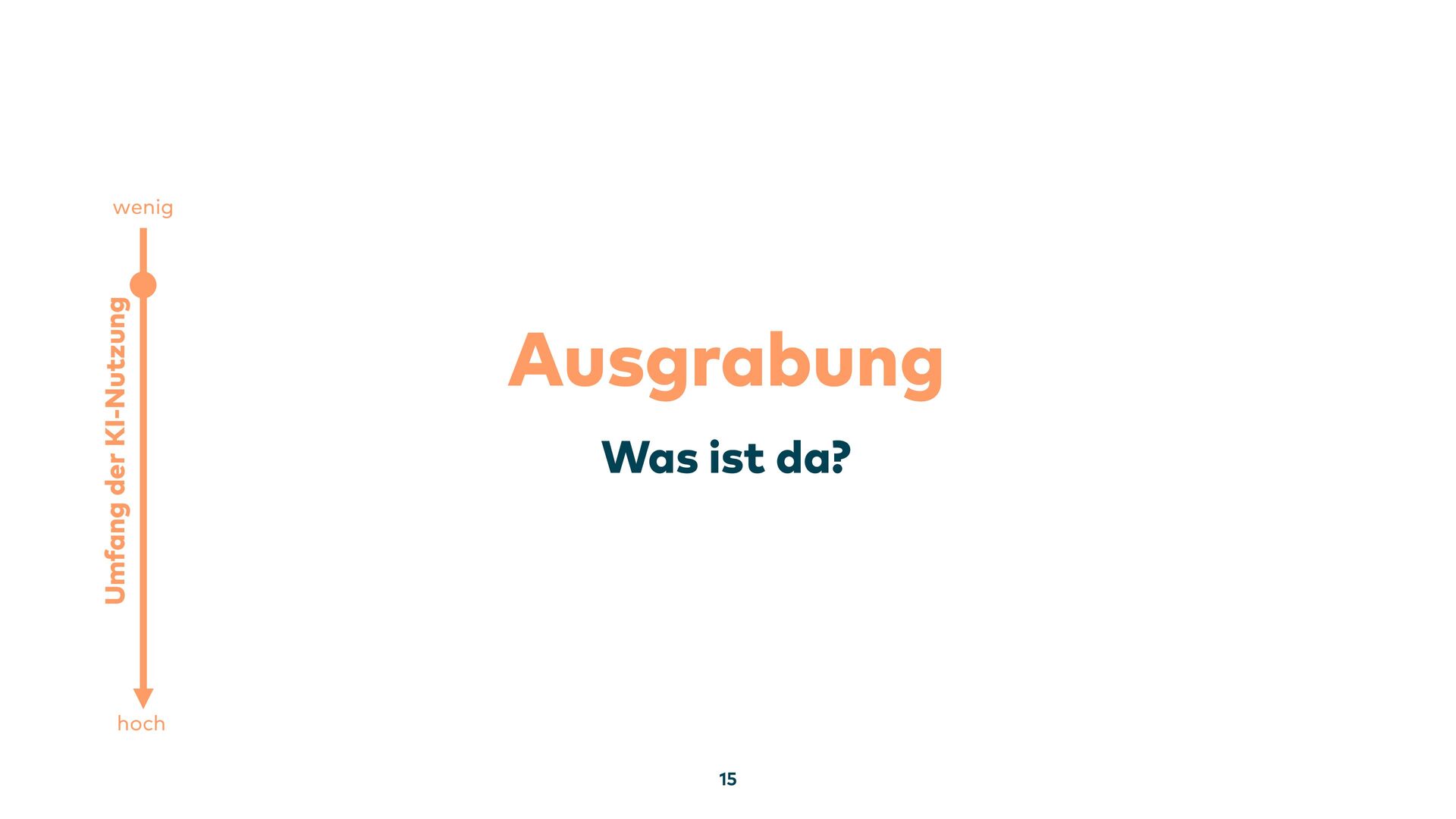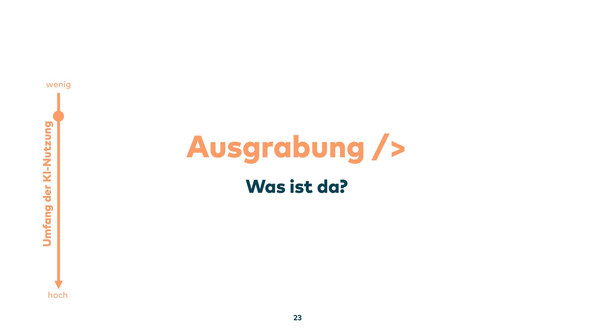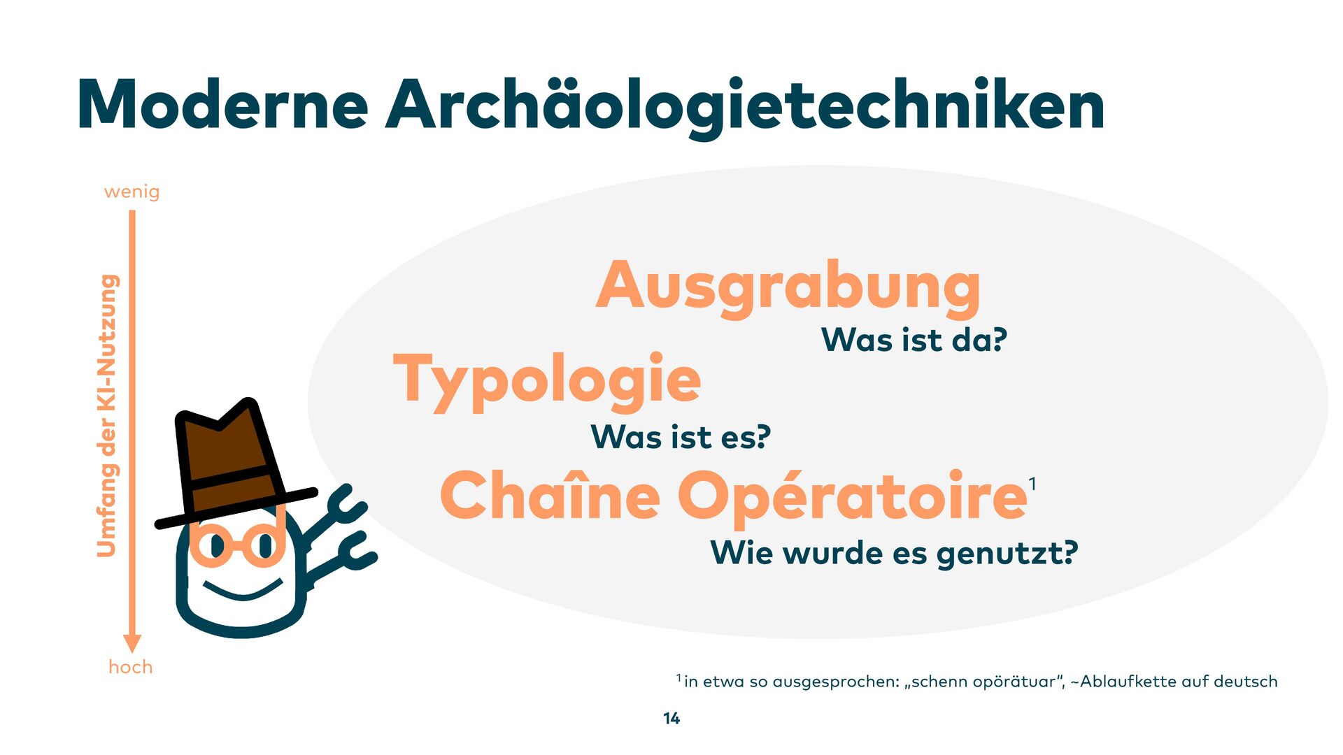9. Moderne Archäologietechniken Ausgrabung Typologie Chaîne Opératoire1 Umfang der KI-Nutzung wenig