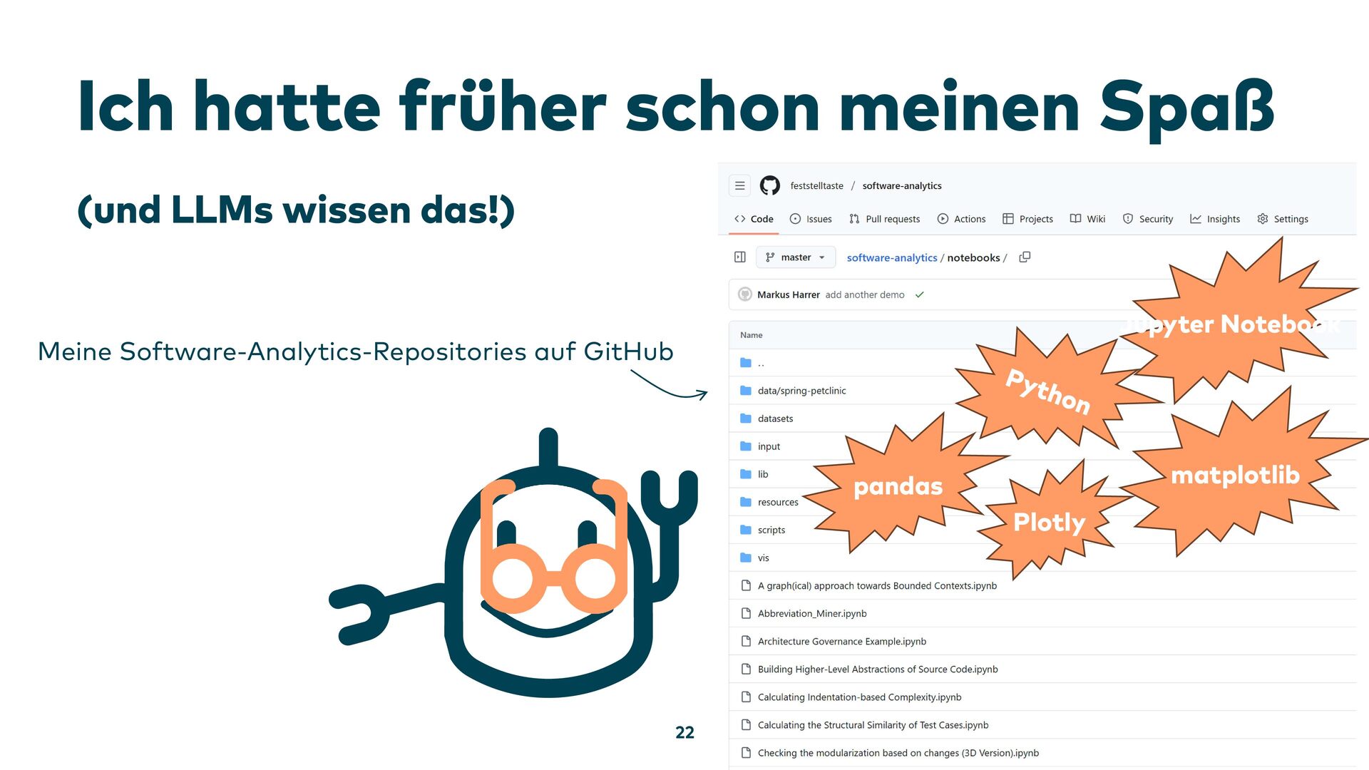 22 Meine Software-Analytics-Repositories auf GitHub pandas matplotlib Plotly Jupyter Notebook