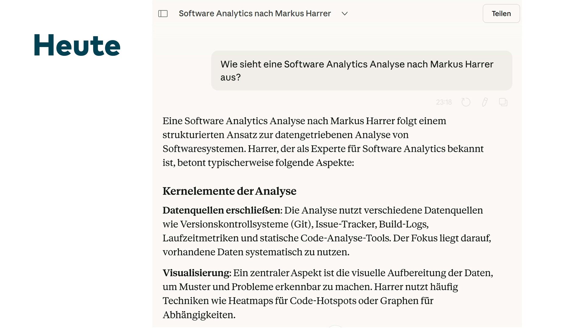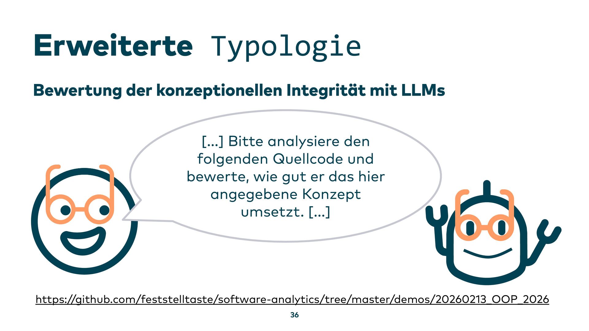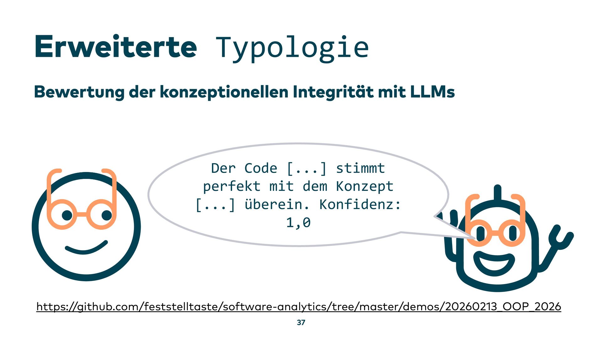[...] stimmt perfekt mit dem Konzept [...] überein. Konfidenz: 1,0 37 https://github.com/feststelltaste/software-analytics/tree/master/demos/20260213_OOP_2026